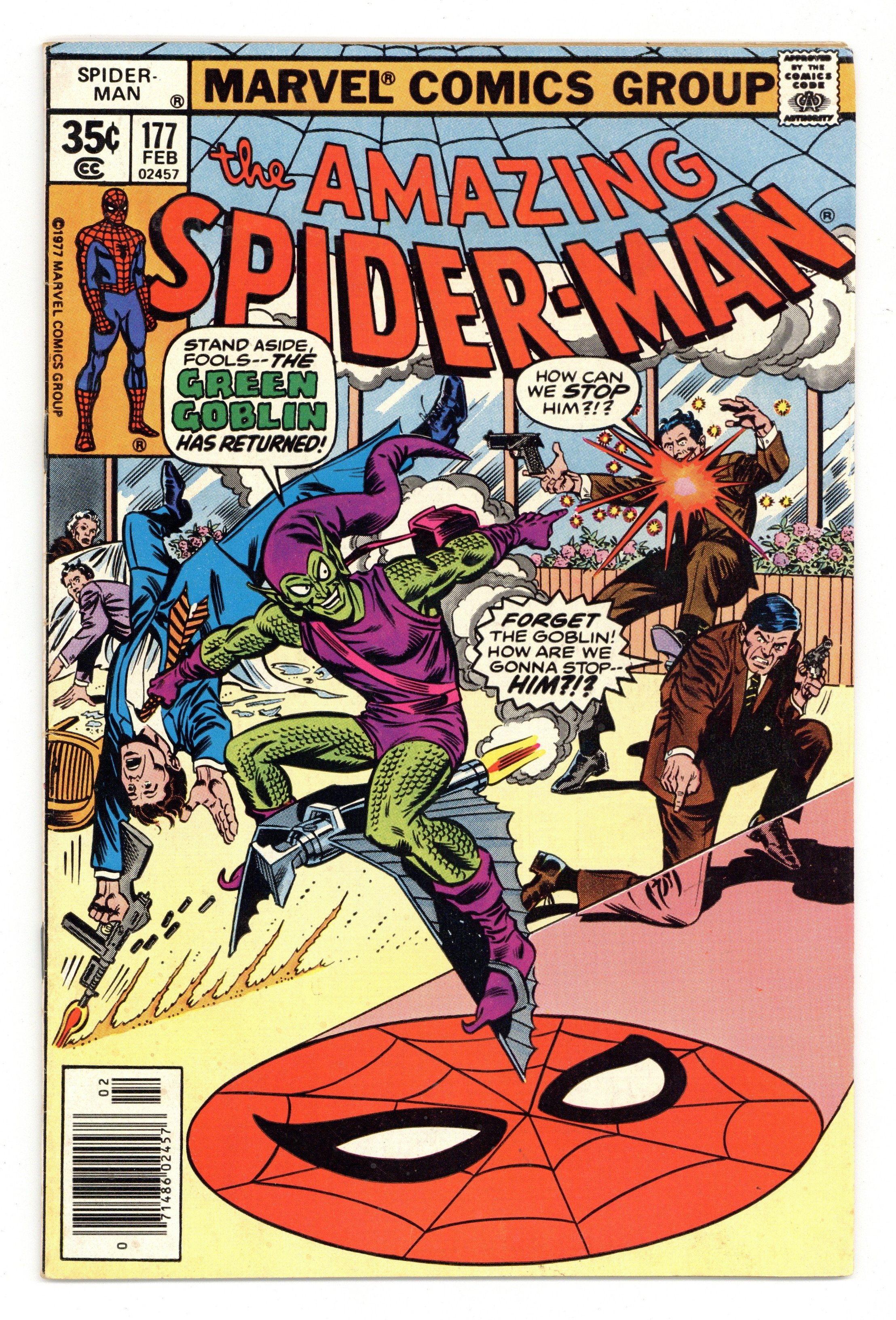 Pizzazz Variant, has centerfold subscription offer for "Pizzazz" Magazine. The Green Goblin is still out to annoy Spider-Man in "Goblin in the Middle." Script by Len Wein, pencils by Ross Andru, inks by Mike Esposito. Silvermane appearance. 36 pgs. Cover price $0.35.