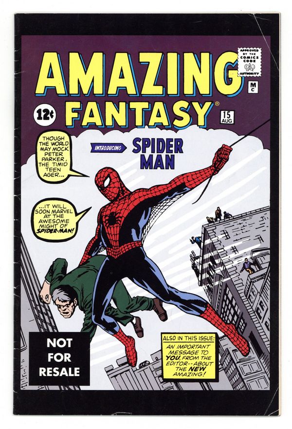 $20.00Dated May 2005 in indicia. Reprint of Amazing Fantasy #15. This 32 Page comic came packaged with First Appearance Spider-man of the Marvel Legends Series X or action figures (The Sentinel Series)
