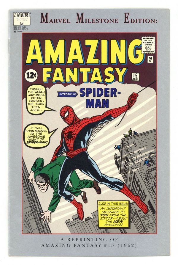 Reprints Amazing Fantasy 15 by Steve Ditko (1st Spider-Man) Cover price $2.95.