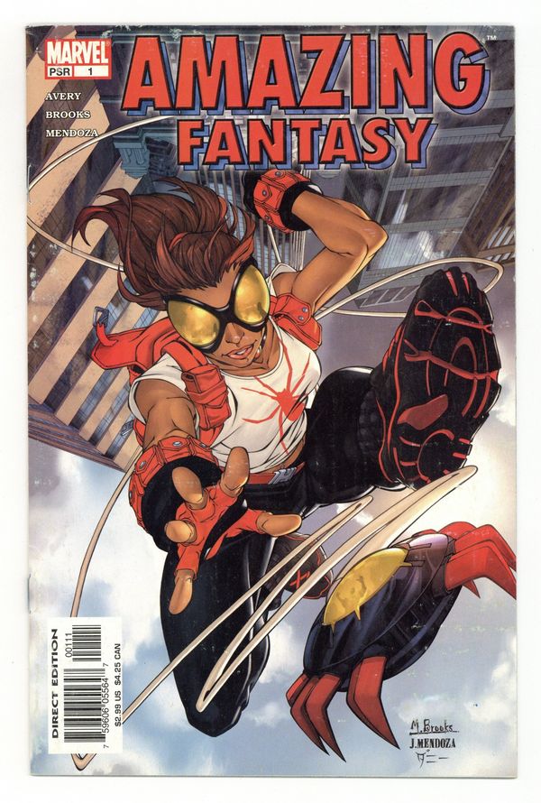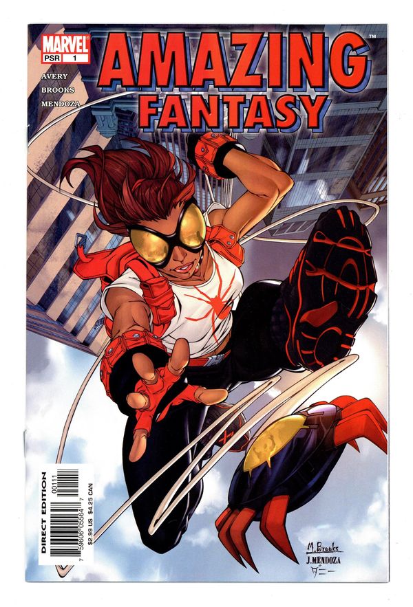 Written by FIONA AVERY Pencils & Cover by MARK BROOKS She's fierce, she's sassy... she sticks to walls! AMAZING FANTASY #1 is where it all begins: Meet an all-new, all-different heroine! Fiona Avery (AMAZING SPIDER-MAN) and Mark Brooks (MARVEL AGE SPIDER-MAN) launch a surprising series of teen- friendly adventures set in the current Marvel Universe! 32 PGS./MARVEL P Cover price $2.99.