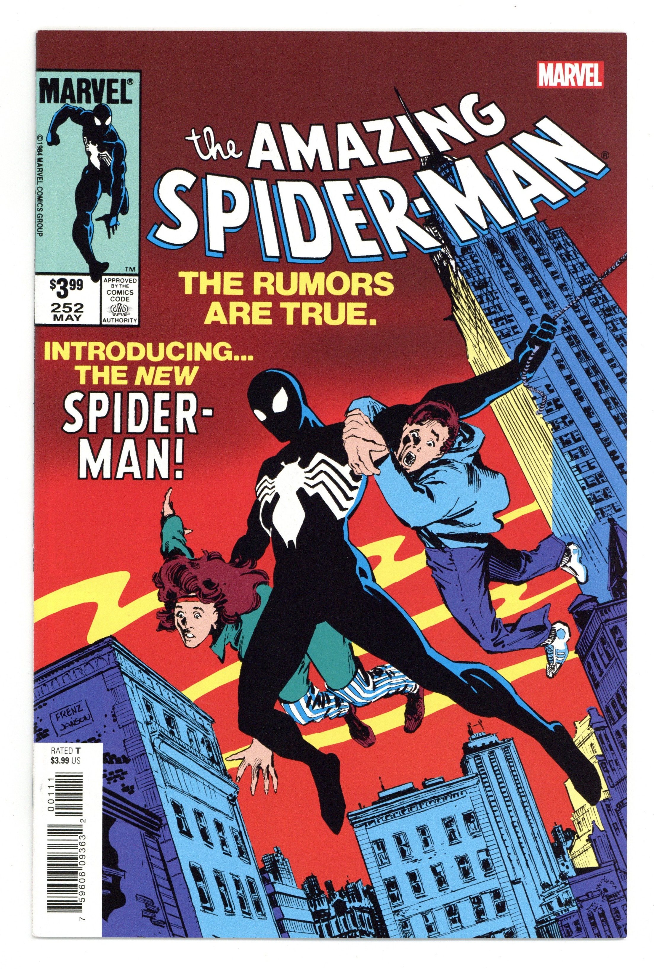 $18.00Written by Roger Stern and Tom DeFalco. Art and Cover by Ron Frenz. The stunning debut of Spider-Man's black suit - the alien costume that would one day become Venom! As Spidey makes his homecoming from the super hero Secret Wars, he returns with a miraculous new outfit, a striking black-and-white Spider-Man costume that morphs and responds to his very thoughts - allowing him to change back to Peter Parker at will! But is it possible that this miraculous article of alien clothing may have a mind of its own? With New Yorkers made uneasy by his new look and the Secret Wars photos he took far too alien to sell to the Daily Bugle, can Peter pick up the life he left behind? Relive the issue that set in motion the entire saga of Venom! It's one of the all-time great Marvel comic books, boldly re-presented in its original form, ads and all! 32 pages, full color. Rated T Cover price $3.99.