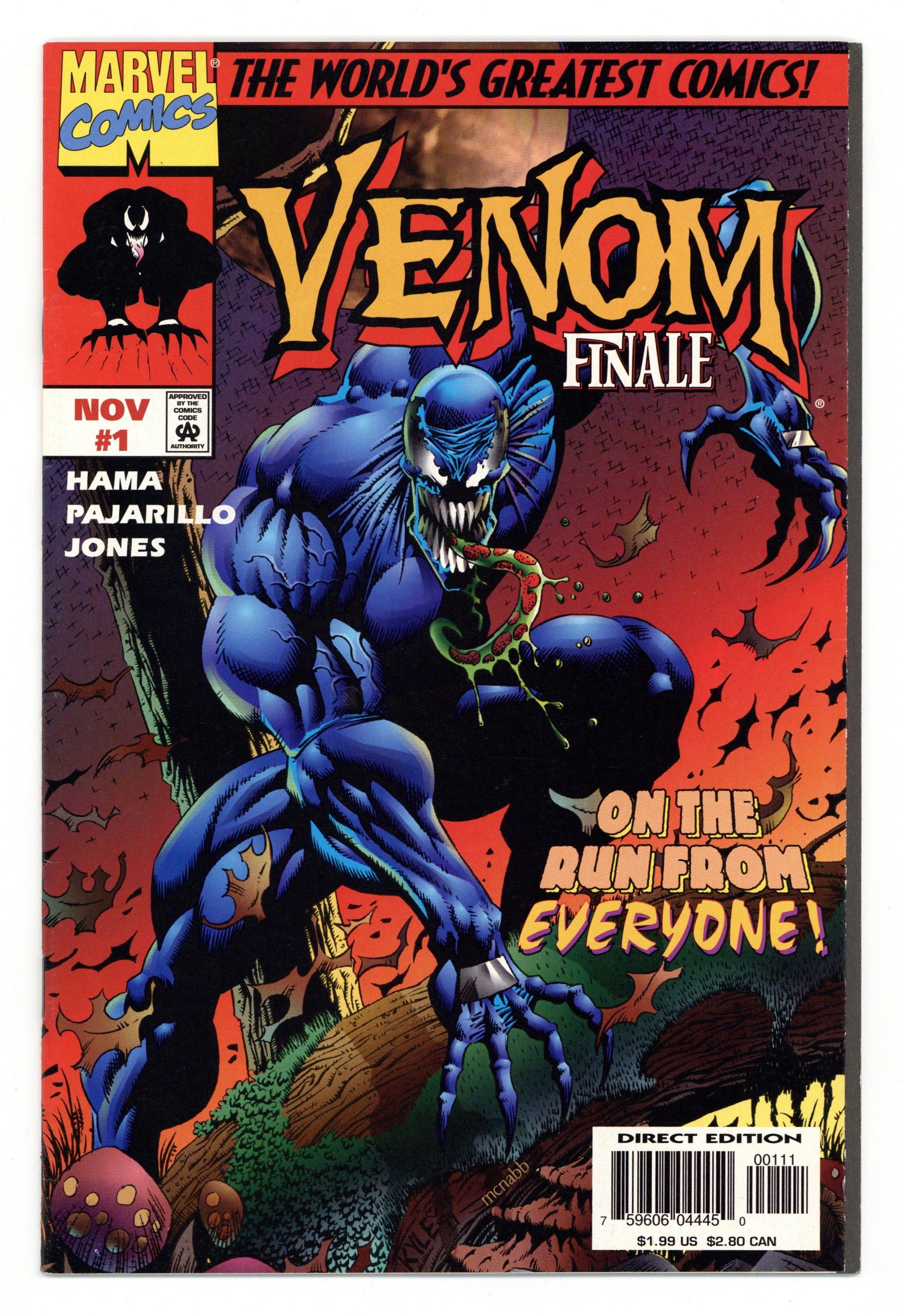 Kicking off the final Venom limited series--a shocker that will reposition him as the most deadly foe of Spider-Man! After a disastrous assignment gone horribly wrong, Venom goes rogue, with the forces of the Overreach Committee anxious to silence their one-time operative! And when Venom resurfaces, can a certain wall-crawler be far behind? Written by Larry Hama. Art by Mark Pajarillo and Robert Jones. Cover by Kyle Hotz. Cover price $1.99.
