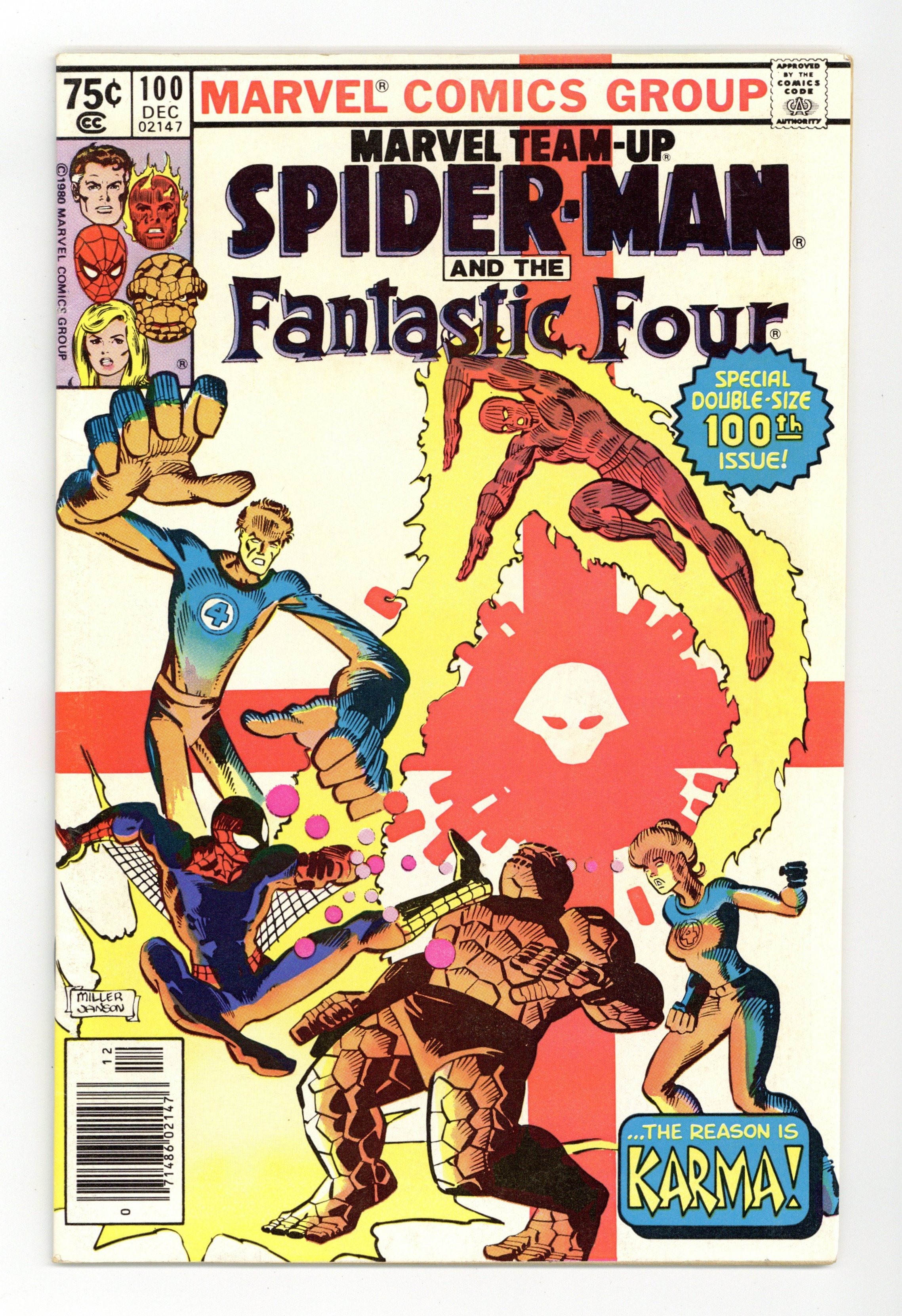 Tags: Spider-Man$19.25Newsstand Edition. Giant-size issue. "And Introducing Karma! She Possesses People!" Guest-starring Spider-Man and the Fantastic Four. Script by Chris Claremont. Art by Frank Miller (breakdowns) and Bob Wiacek (finishes). Cover by Frank Miller and Klaus Janson. The Fantastic Four are attending an upscale reception in New York's financial district, when suddenly the Spectacular Spider-Man crashes the party! The web-slinger wants to rescue two Vietnamese children in attendance, but instead ends up battling the FF! What has possessed the wall-crawler to do this? After comparing notes, the fabulous foursome and Spider-Man realize that they are caught in the middle of a child custody battle between two high-powered telepaths! And on the East River waterfront, the life-and-death showdown takes place! First appearance of Karma (Xi'an Coy Manh). Cameo appearances by Colossus, Storm, Wolverine, and Professor Xavier. (Notes: Karma appears next in Marvel Graphic Novel 4. This story was reprinted in Marvel Tales 250 and also in The Complete Frank Miller Spider-Man.) Second story: "Cry--Vengeance!" Guest-starring Storm and the Black Panther. Plot by Chris Claremont and John Byrne. Script by Chris Claremont. Art by John Byrne (breakdowns) and Bob McLeod (finishes). After surviving an assassination attempt, Storm learns that an old foe from days gone by has come back for revenge. Ororo visits the Wakanda embassy to tell T'challa that Andreas De Ruyter is in New York. And just as they did many years ago on the African continent, the Black Panther and Storm team up to fight the evil of De Ruyter! 52 pages. Cover price $0.75.