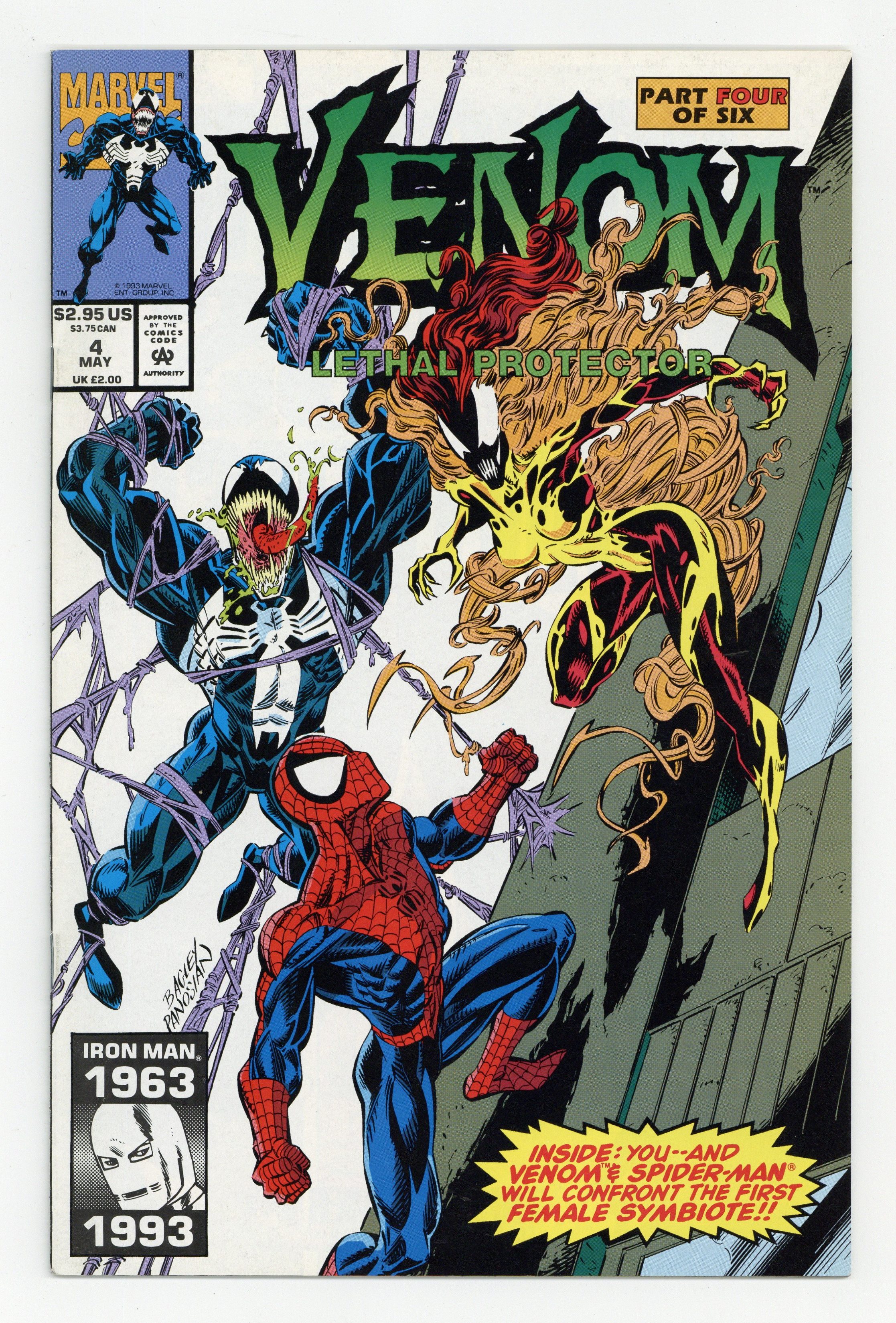 Tags: Marvel Legacy Numbering: Venom (part 4), Spider-Man$15.50Direct Edition. The first female symbiote enters the scene! Spider-Man and Venom confront the Life Foundation's master plan, when a new killer symbiote is born. Written by David Michelinie. Art by Ron Lim, Sam de la Rosa and Al Milgrom. Cover by Mark Bagley and Dan Panosian. Cover price $2.95.