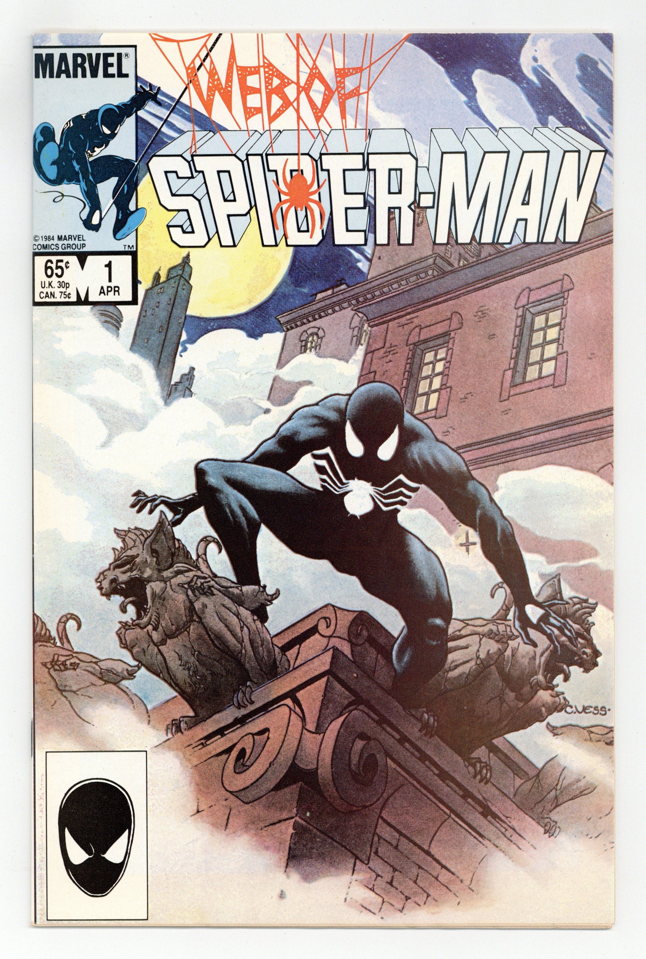 Ends Dec 22 10:00 PM CST Bid History 11 bids Current Bid $97 Your Secret Max Bid If you'd like to bid, please log in or register. Direct Edition. "Til Death Do Us Part!" Story by Louise Simonson. Art by Greg LaRocque and Jim Mooney. Painted cover by Charles Vess. The alien symbiote (aka black costume) ambushes Peter Parker while he is getting dressed. Now Spider-Man must battle the black costume and the new Vulturions on his way to the Baxter Building! Meanwhile, Aunt May laments Peter's decision to drop out of graduate school. (Note: The Web of Spiderman series essentially replaced the Marvel Team-Up title as Marvel's third regular series featuring Spider-Man.) 32 pages Cover price $0.65.