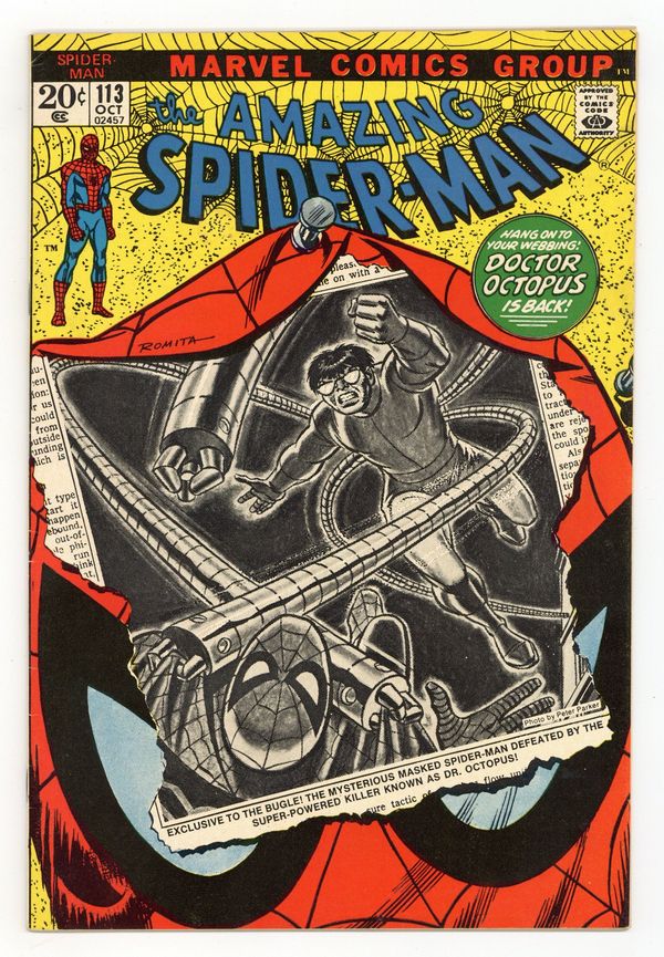 Ends Mar 2 7:11 PM CST Bid History 8 bids Current Bid $18 Your Secret Max Bid If you'd like to bid, please log in or register. First appearance of Hammerhead in "They Call the Doctor...Octopus!" Part 1 of 3. Script by Gerry Conway. Art by Jim Starlin (breakdowns), John Romita (finishes), and Tony Mortellaro (backgrounds). Cover by John Romita. What a shocking turn of events! The web-slinger was looking for his Aunt May...but he found Doc Ock instead! As expected, a free-for-all quickly commences between the long-time adversaries. But due to sharp pains in his stomach, Spider-Man has to retreat. However not before Dr. Octopus rips off his mask! When Peter returns to his apartment, his roommate calls for a doctor. And to everybody's surprise, Peter is diagnosed with an ulcer! Meanwhile, Otto Octavius resumes his plan to take over the New York underworld. But there's a new crime boss in town who also wants to run New York's rackets! And his name is Hammerhead! Cameo appearances by Randy Robertson, Martha Robertson, Joe Robertson, J. Jonah Jameson, Gwen Stacy, Harry Osborn, Betty Brant, and Ned Leeds. (Notes: John Romita is credited as a co-plotter. This story was reprinted in Marvel Tales #92.) 36 pages. Cover price $0.20.