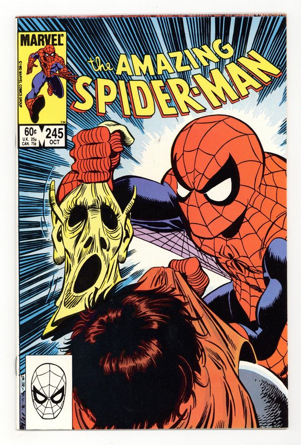 Tags: Marvel Legacy Numbering: Amazing Spider-Man (part 245), Spider-Man$23.00Direct Edition. "Sacrifice Play!" Part 2 of 2. Fourth appearance of the Hobgoblin. Script by Roger Stern. Art by John Romita Jr. (breakdowns) and Dave Simons (finishes). Cover by John Romita Jr. and Dave Simons. The wondrous wall-crawler thinks he knows who the Hobgoblin is! Lefty Donovan! Who? Apparently, the evidence from the police points in Lefty's direction! So, the web-slinger conducts a relentless search! And in the skies over Times Square, the Amazing Spider-Man and the (suddenly super-strong) Hobgoblin clash again! Will this battle solve the mystery of the goblin's identity? Or just add to the puzzle? Cameo appearances by Mary Jane Watson, Ned Leeds, and Betty Brant Leeds. (Note: The Hobgoblin appears next in Spectacular Spider-Man 85 -- a must read to keep up with the Hobgoblin's development.) 36 pgs. Cover price $0.60.