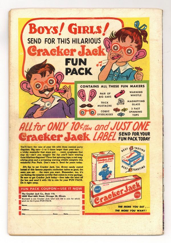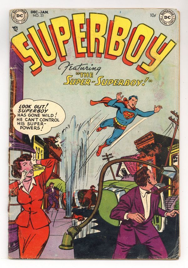 Cover art by Win Mortimer. Clark Kent--Miser!, art by John Sikela; a detective is convinced that Clark is the long lost heir to a millionaire. UNICEF Spells Help for the Children of the World! starring Superman, script by Jack Schiff, art by Win Mortimer. Superboy Goes to College!, pencils by Curt Swan, inks by John Fischetti; Superboy teaches some college courses so the Professors can have a vacation. Magic Ballroom--Superboy's Workshop activity page. Varsity Vic humor two-pager by Henry Boltinoff. The Super Superboy!, script by Jerry Coleman; Superboy's powers appear to be totally out of control. Little Pete humor page by Henry Boltinoff. 44 Pages, Full Color. Cover price $0.10.