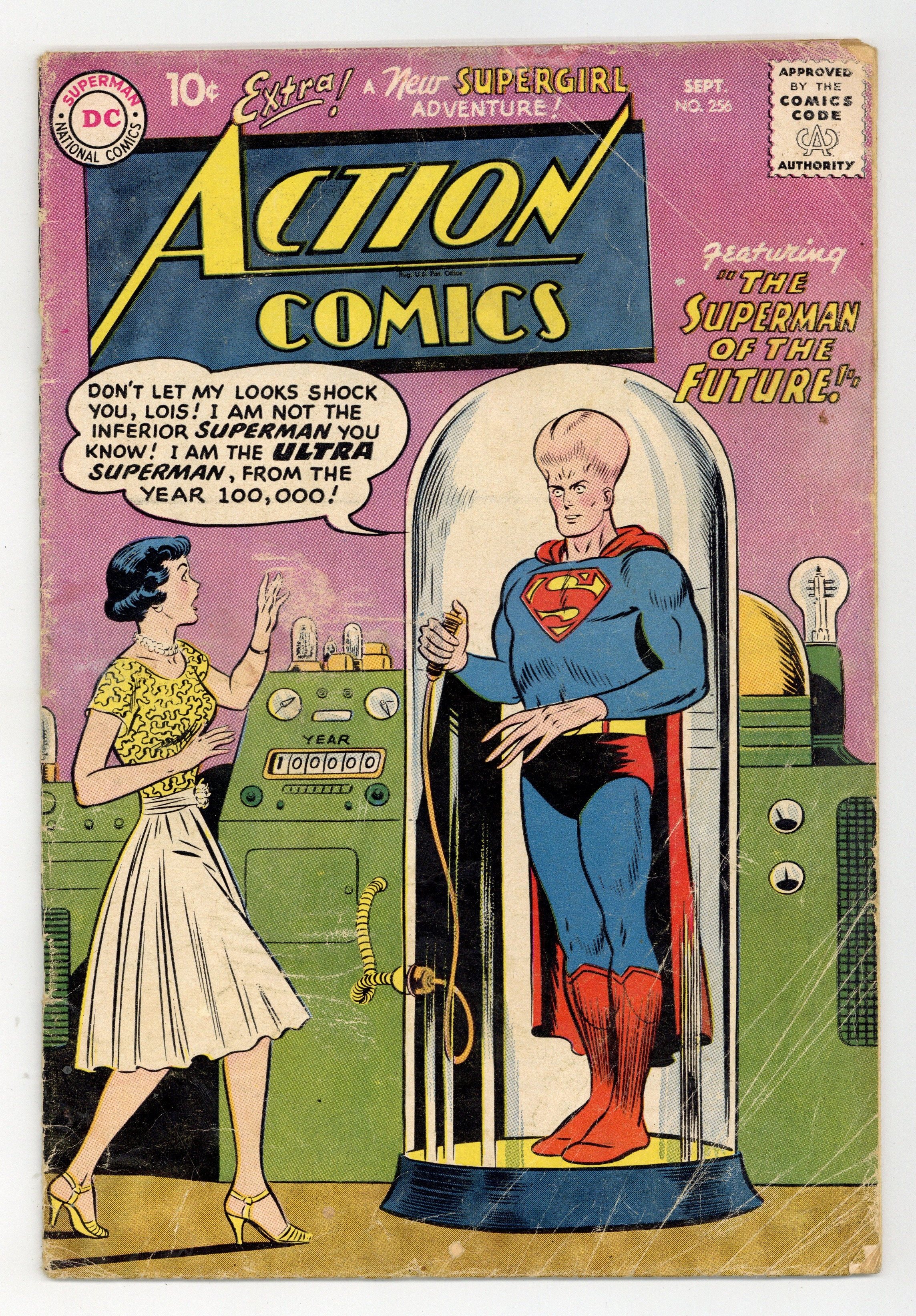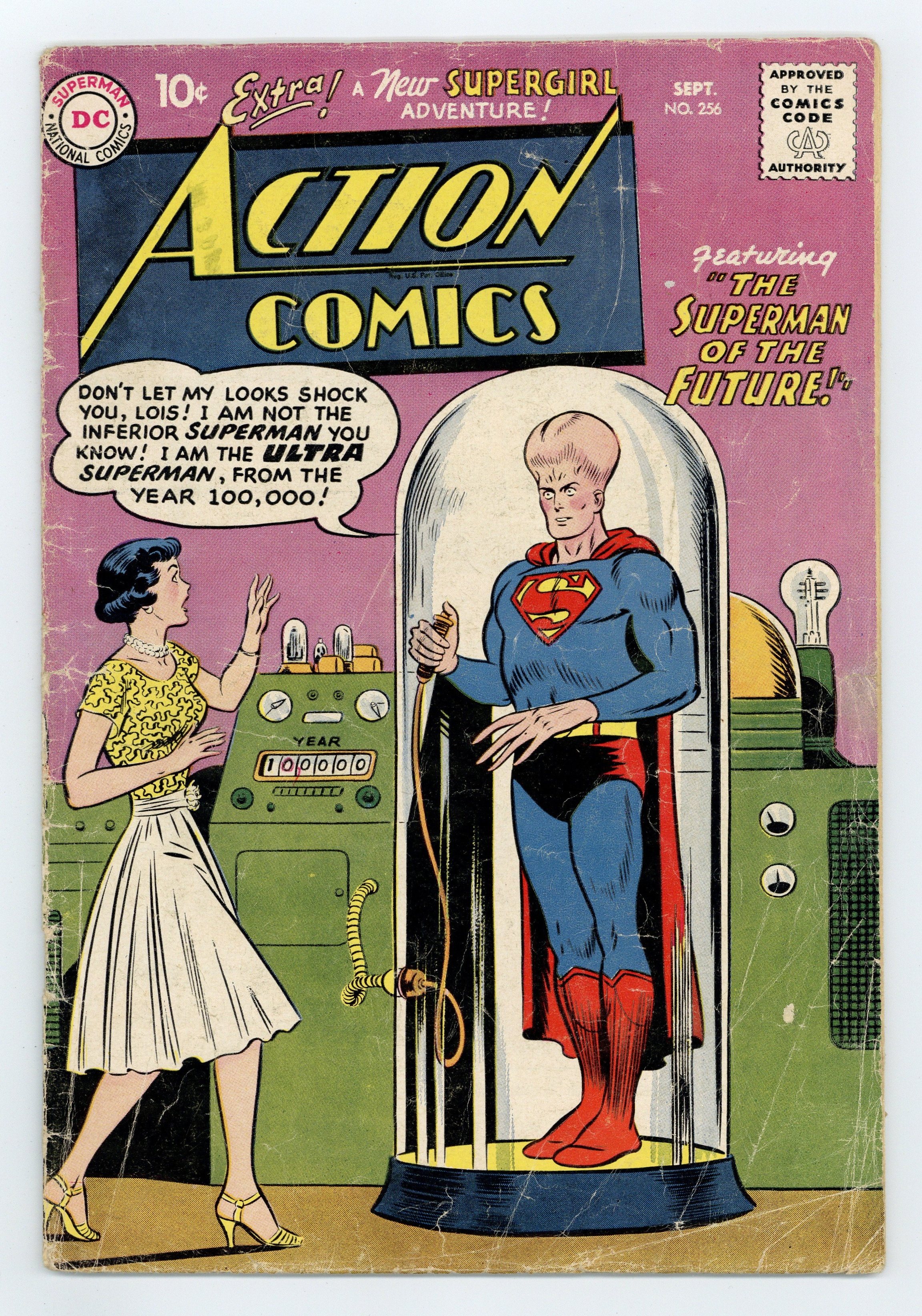 Cover pencils by Curt Swan, inks by Stan Kaye. "The Superman of the Future!", script by Otto Binder, pencils by Curt Swan, inks by Stan Kaye; Superman poses as the Future Superman, who has the power to predict the future, to smoke out Agent X-3 and prevent an attempt on the life of the President. 2/3-page Professor Eureka story by Henry Boltinoff. "Janu, the Joker of the Jungle!", art by Howard Sherman. "The Great Supergirl Mirage!", script by Otto Binder, art by Jim Mooney; Dick becomes convinced that Linda is Supergirl and tries various tricks to prove her real identity. 36 Pages, Full Color. $.10 Cover price $0.10.
