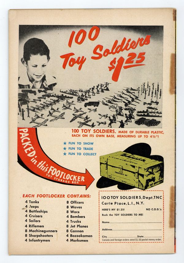 Last 10-cent cover price. Cover pencils by Curt Swan, inks by Stan Kaye. "Superman's Toughest Day!", script by Bill Finger, art by Al Plastino; A day in Superman's life. His Clark Kent robot has to avoid showing the damage to his hands while on a date with Lois. One-page Shorty story by Henry Boltinoff. One-page Sagebrush Sam story by Henry Boltinoff. "The Supergirl of Tomorrow!", script by Jerry Siegel, art by Jim Mooney; Using a time machine, a powerless Supergirl travels to the future, where her powers return and she frees humanity from the tyrannical reign of the Clan of Censors. One-page Little Pete story by Henry Boltinoff. 36 Pages, Full Color. $.10 Cover price $0.10.