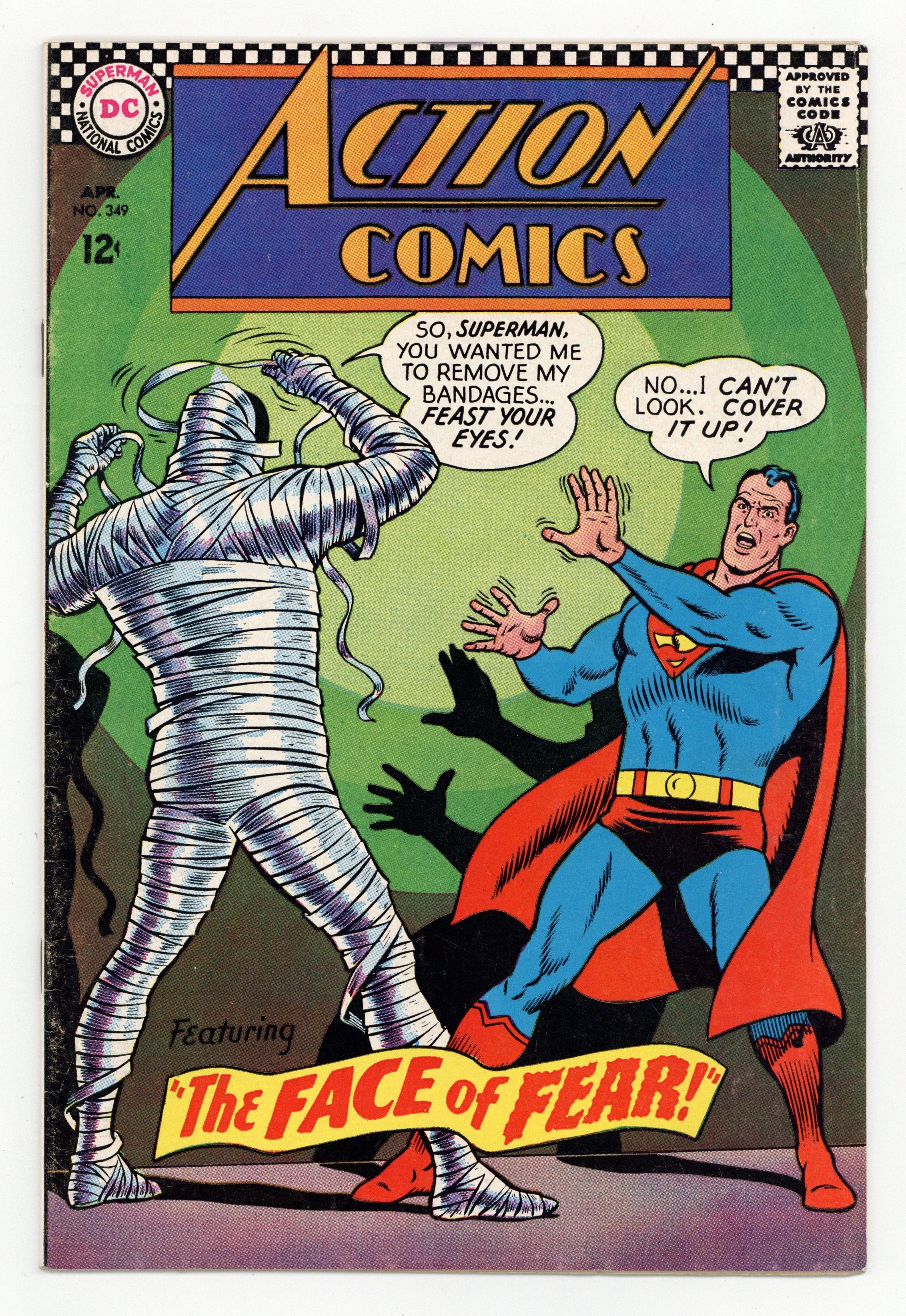 Cover pencils by Curt Swan, inks by George Klein. "The Face of Fear!", art by Wayne Boring; Inter crime's scientist Dr. Kane transforms himself into a living Kryptonite man to kill Superman. The Flash ad. "Supergirl's Black Deeds!", script by Otto Binder, art by Jim Mooney; Supergirl finds herself compelled to perform wicked deeds, but something always happens to mitigate the consequences; She never learns that two aliens have been controlling her actions and those of people around her in a strange game. 36 Pages, Full Color. $0.12 Cover price $0.12.