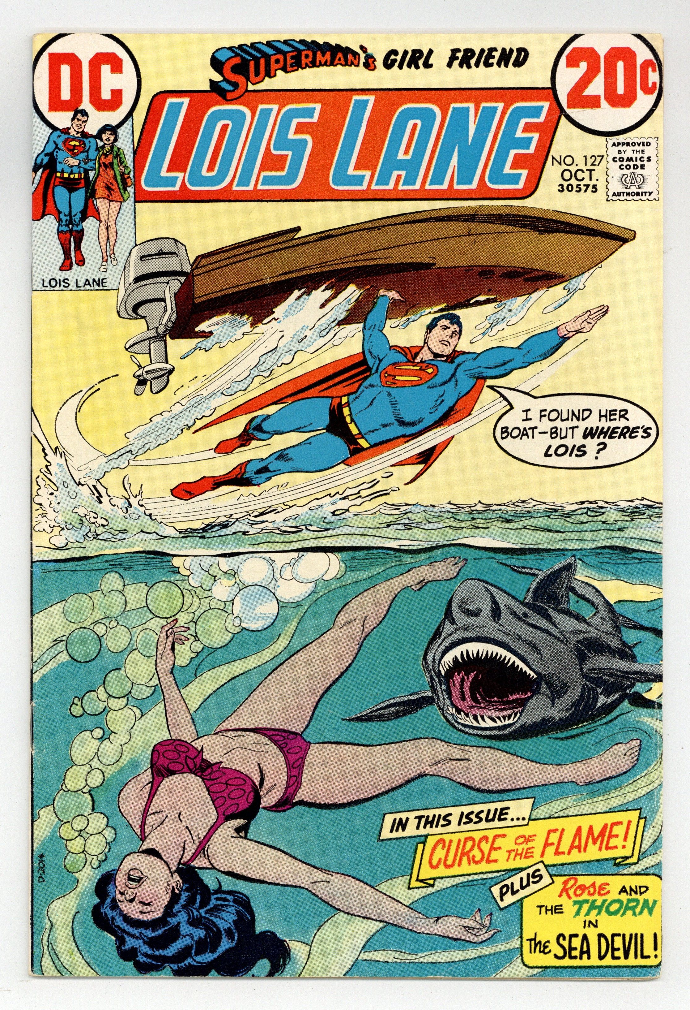 Cover art by Bob Oksner. Curse of the Flame, script by Cary Bates, pencils by John Rosenberger, inks by Vince Colletta and Murphy Anderson (Superman heads only); Lois covers the Trans-Europa Olympics and discovers the 100 are using it as a cover to smuggle a large diamond. The Sea Devil!, script by Cary Bates, art by Don Heck; Thorn discovers a scheme to ransom a stolen giant white octopus. 36 Pages, Full Color. Cover price $0.20.