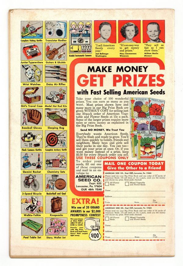 Cover pencils by Curt Swan, inks by George Klein. Superman's Achilles' Heel!, art by Pete Costanza; The Man of Steel resorts to wearing a steel box on his right hand after Red Kryptonite gives him a vulnerable "Achilles' Heel". Target Superman! [part 1], art by Jim Mooney; Rich Dolores Rivera uses her fortune to try to snare Superman. The Irresistible Clark Kent! [part 2]; Vol-Don of the Look-Alike Squad of Kandor impersonates Clark Kent to help Superman. 36 Pages, Full Color. Cover price $0.12.