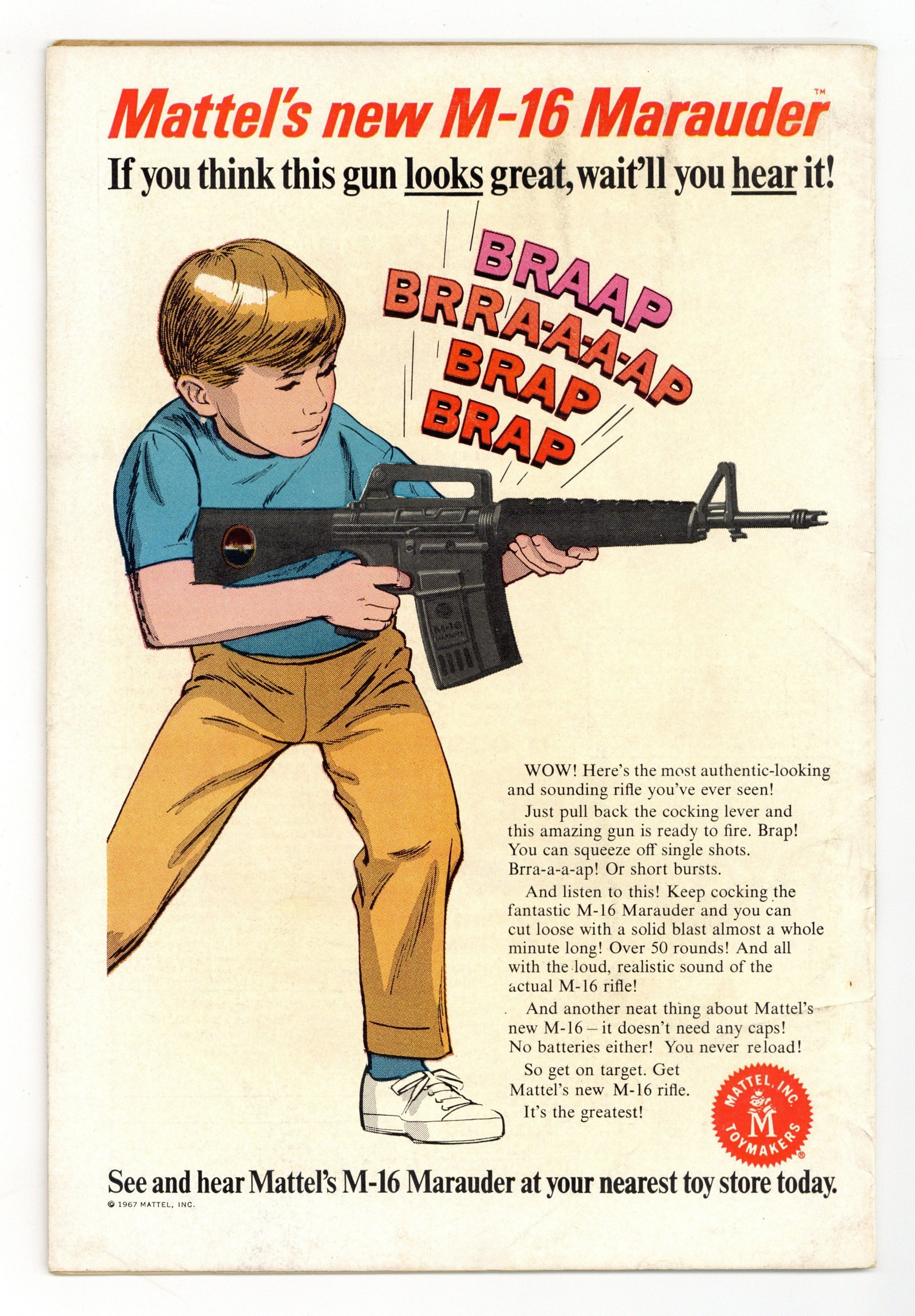 - 1.25" Spine split from bottom of comic. Centerfold detached at one staple.