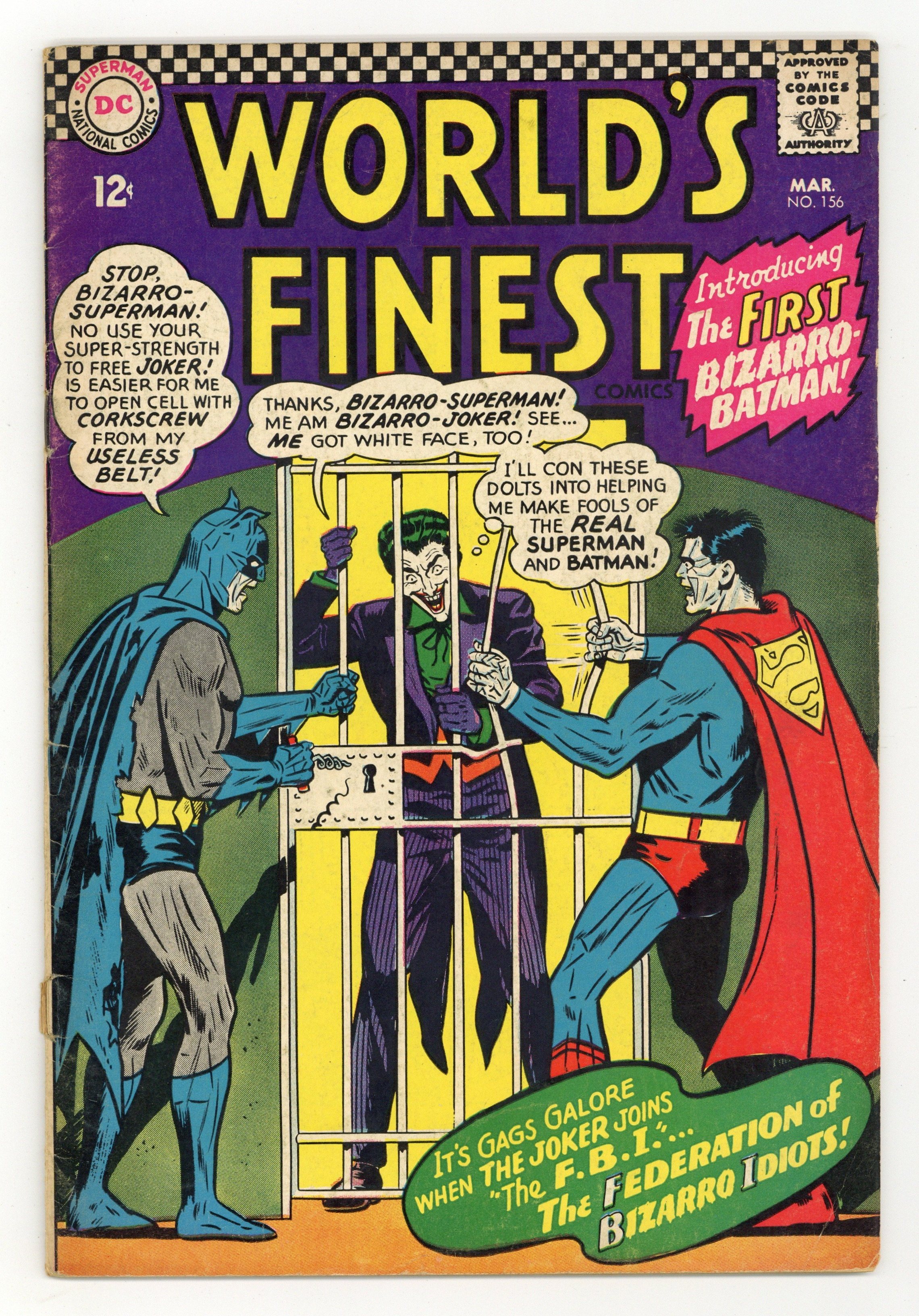 1st appearance of Bizarro Batman. Cover pencils by Curt Swan, inks by Sheldon Moldoff. The Federation of Bizarro Idiots starring Superman and Batman, script by Edmond Hamilton (with pages 1, 11-14 by E. Nelson Bridwell), pencils by Curt Swan, inks by George Klein; the Bizarros decide Joker is an honorary Bizarro! Super-Turtle humor page by Henry Boltinoff. Puzzle of the Perilous Planetoid--Editors' Round Table: Tommy Tomorrow, script by Otto Binder, art by Jim Mooney. 36 Pages, Full Color. Cover price $0.12.
