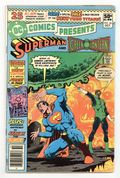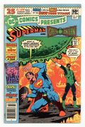 Tags: Superman$125.00Newsstand Edition. 1st appearance of the New Teen Titans in preview story; 1st appearances of Raven, Cyborg and Starfire. Cover by Jim Starlin. Stories by Jim Starlin, Marv Wolfman and Bob Rozakis. Art by Jim Starlin, George Pérez, José Delbo, Steve Mitchell, Dick Giordano and Kim DeMulder. N'Gon is attempting to gain power by taking it from other super-beings, but Superman and Green Lantern combine forces to imprison N'Gon in "Between Friend and Foe!" by Jim Starlin (plot and pencils), Marv Wolfman (script) and Steve Mitchell (inks). Characters in this story: Green Lantern [Hal Jordan]; Superman [Clark Kent]; Green Lantern [Archon Z'Gmora]; N'Gon (villain); Archie Jones. Plus: Raven uses her powers to enter Dick Grayson's dreams to show him a scene from the not-too-distant future of the new Teen Titans team battling to save the world from an other-dimensional protoplasmic creature in "Where Nightmares Begin!" by Marv Wolfman, George Pérez and Dick Giordano. Characters in this story: Teen Titans [Changeling [Garfield Logan] (introduction as Changeling); Cyborg [Victor Stone] (introduction); Kid Flash [Wally West]; Raven (introduction); Robin [Dick Grayson]; Starfire [Koriand'r] (introduction); Wonder Girl [Donna Troy]]; Silas Stone (introduction); an other-dimensional protoplasm (villain). Story continues in New Teen Titans (1980) (Tales of ...) #1. Also: The Matter Master attempts to steal the Ruby of Life but Sargon stops him in the back-up story "Whatever Happened to Sargon the Sorcerer?" by Bob Rozakis, José Delbo and Kim DeMulder. Characters in this story: Justice League of America [The Atom [Ray Palmer] (flashback); Batman [Bruce Wayne] (flashback); The Flash [Barry Allen] (flashback); Green Arrow [Oliver Queen] (flashback); Hawkman [Katar Hol/Carter Hall] (flashback); Superman [Clark Kent] (flashback); Wonder Woman [Diana Prince] (flashback)]; The Matter Master [Mark Mandrill] (villain); Sargon the Sorcerer [John Sargent]. And: Hawkman vs. Golden Raven in 1-page Hostess Fruit Pies ad "She's No Angel" with pencils by Curt Swan. 48 pages, full color. Cover price $0.50.