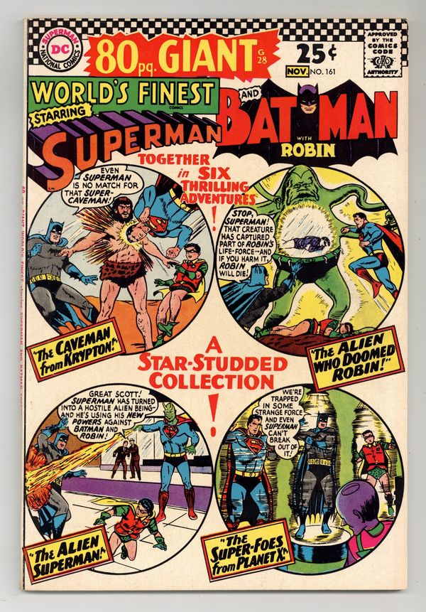Tags: Superman$14.00Cover pencils by Curt Swan, inks by Stan Kaye and Sheldon Moldoff. The Caveman From Krypton starring Superman and Batman, script by Bill Finger, pencils by Dick Sprang, inks by Sheldon Moldoff (Splash by Ray Burnley); Superman battles a super caveman. The Super-Foes From Planet X starring Superman and Batman, script by Edmond Hamilton, pencils by Dick Sprang, inks by Stan Kaye. The Super-Batwoman starring Superman and Batman, script by Edmond Hamilton, pencils by Dick Sprang, inks by Stan Kaye. The Alien Who Doomed Robin starring Superman and Batman, script by Jerry Coleman, pencils by Dick Sprang, inks by Sheldon Moldoff. The Menace of the Atom-Master starring Superman and Batman, script by Bill Finger, art by Dick Sprang. The Alien Superman starring Superman and Batman, script by Bill Finger, pencils by Dick Sprang, inks by Sheldon Moldoff. 84 Pages, Full Color. Cover price $0.25.