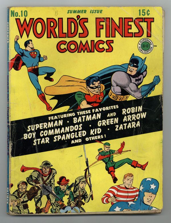 The Insect Terror! starring Superman, script by Jerry Siegel, pencils by Ed Dobrotka [as Joe Shuster], inks by John Sikela [as Joe Shuster]; A new criminal succeeds in terrorizing Metropolis with hordes on insects, something he says will continue unless the citizens pay him tribute! Meet Mister Gadget starring The Star Spangled Kid and Stripesy, art by Hal Sherman. The Man Who Made Miracles starring Zatara, art by Joseph Sulman. Message to Mermansk starring The Boy Commandos, script and pencils by Joe Simon, inks by Jack Kirby. Super-Sleuth McFooey story, script and art by Jack Farr. Bring 'em Back Alive starring Martin of the Marines, art by John Daly. The Eye of Sheba! starring The Green Arrow, pencils by Cliff Young, inks by Steve Brodie. Among Their Souvenirs starring Drafty, art by Stan Kaye. Man With the Camera Eyes starring Batman and Robin, script by Bill Finger, pencils by Jerry Robinson [as Bob Kane] inks by George Roussos [as Bob Kane]; Oliver Hunt is tired of being tabbed "The Man With the Camera Eyes," so he joins up with a known gang in Gotham City to help them commit crimes: as long as there is no murder or mayhem committed. 92 pages, Full Color. Cover price $0.15.