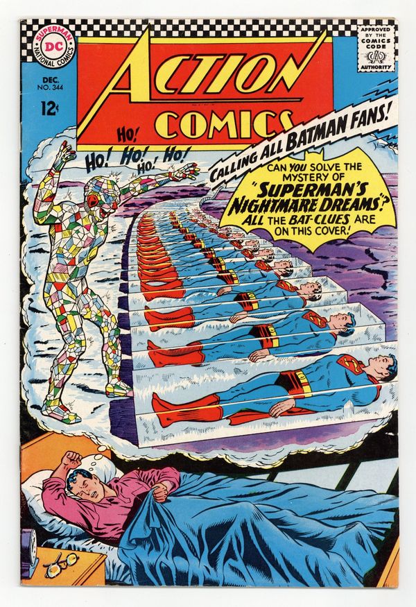Tags: Superman$27.00Cover pencils by Curt Swan, inks by George Klein. "Superman's Nightmare Dreams!", script by Otto Binder, art by Wayne Boring; Superman and Batman use a machine to temporarily switch bodies. Batman has no control over Superman's body, breaking some containers and exposing Superman's mind to red kryptonite before switching back to his own body; Cameos by the Joker, the Riddler, and the Penguin (on cards). Superman and Batman ad. "The (Super) Girl in the Green House," script by Jim Shooter, art by Jim Mooney; While exploring space, Supergirl finds another planet that is similar to Earth, except that it is run by teens; She is tricked into running for President. An All-Star Collection of the Best of Batman ad. Adventures in the G.I. Joe Club with Andy and George ad. 36 Pages, Full Color. $0.12 Cover price $0.12.