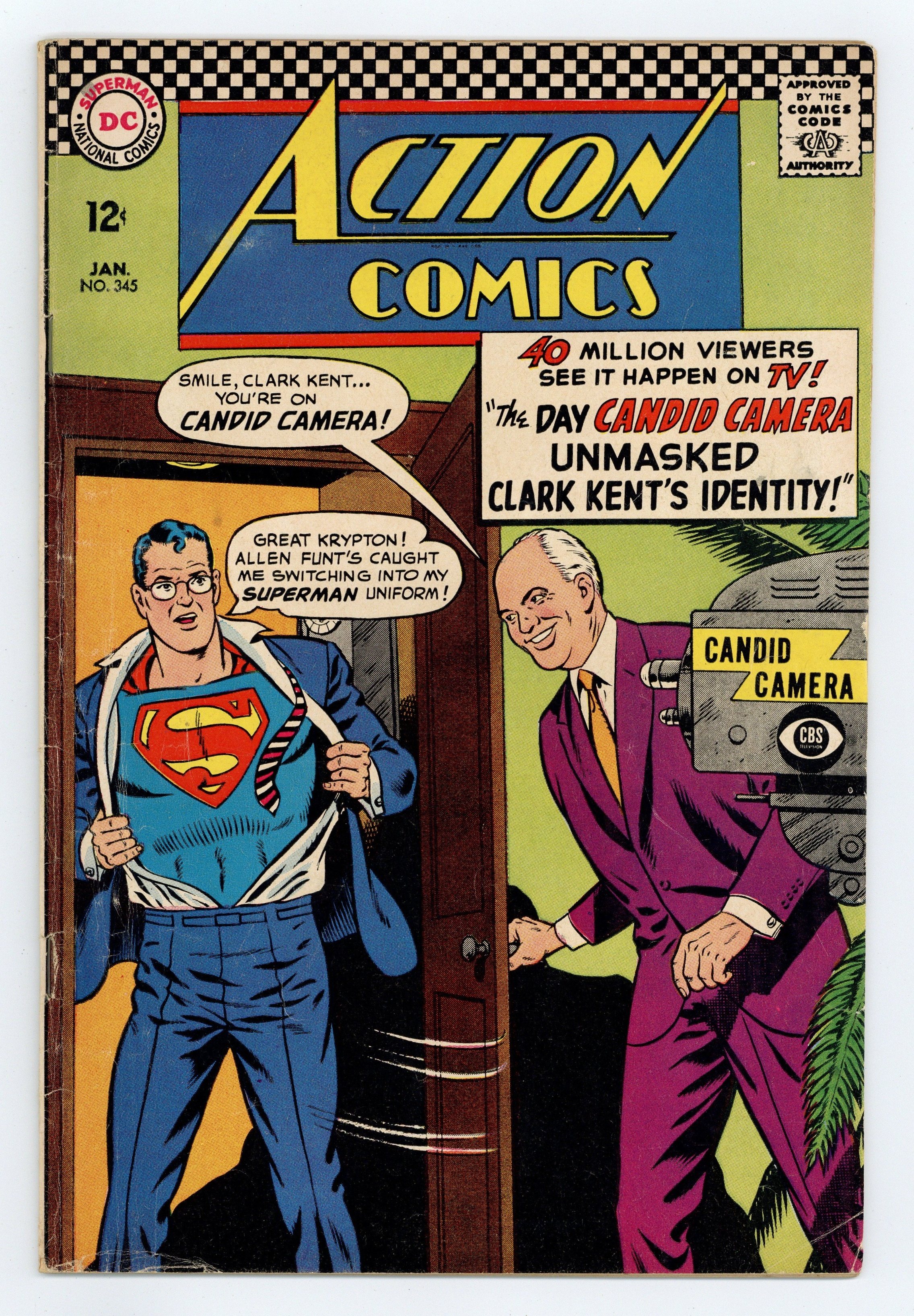 Cover pencils by Curt Swan, inks by George Klein. Allen Funt's Candid Camera TV show (there really was such a show on CBS back in the 1960') catches Clark Kent in the act of changing into Superman in "The Day Candid Camera Unmasked Superman's Identity," script by Leo Dorfman, art by Al Plastino; Funt comes to Metropolis to film his program and nearly exposes Superman's secret identity. Captain Action toy ad. Superman ad. Cap's Hobby Center activity page by Henry Boltinoff. "The Exile of Steel," script by Jim Shooter, art by Jim Mooney; On the parallel planet of Gaea, Supergirl goes on trial for subversive activities and is convicted and exiled but waits her opportunity to return and overthrow the evil dictatorship that takes over after her trial. Batgirl Is Here! ad. 36 Pages, Full Color. $0.12 Cover price $0.12.