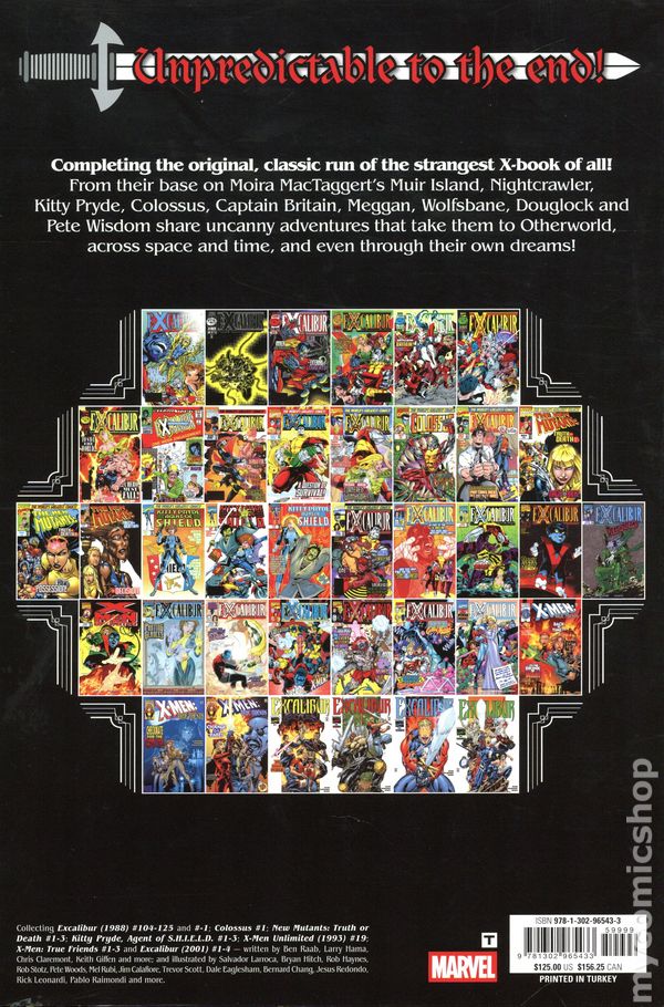 A legendary team is born! Meet the United Kingdom's champion, Captain Britain, and his paramour, the metamorphic Meggan! They'll band together with former X-Men Nightcrawler and Kitty Pryde when Gatecrasher and her Technet are sent to capture Rachel "Phoenix" Summers! From their lighthouse base, the heroes of Excalibur will tackle the ferocious Warwolves, the unstoppable Juggernaut and Mojo mayhem! Things get wild with Arcade, the Crazy Gang and the X-Babies - and really heat up as Excalibur is drawn across the Atlantic to an Inferno raging in New York! And don't forget Lightning Squad, the alternate Nazi versions of Excalibur!