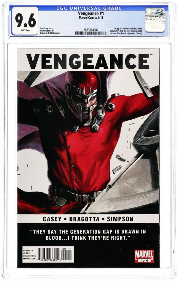 Direct Edition. Cover by GABRIELE DELL'OTTO Written by JOE CASEY Penciled by NICK DRAGOTTA. 1st appearance of Miss America (America Chavez). A MOST EPIC EVIL EXPLORATION OF THE MARVEL U! When MAGNETO of the X-Men tries to rescue a young Mutant on the run, he accidentally kicks off a series of events that will shake the very Marvel Universe to it's core! Who are the new TEEN BRIGADE?! Who are the Brotherhood and what do they want with the YOUNG MASTERS OF EVIL?! And how is the RED SKULL pulling the strings from beyond the grave? 32 PGS./Rated T+ Cover price $3.99.