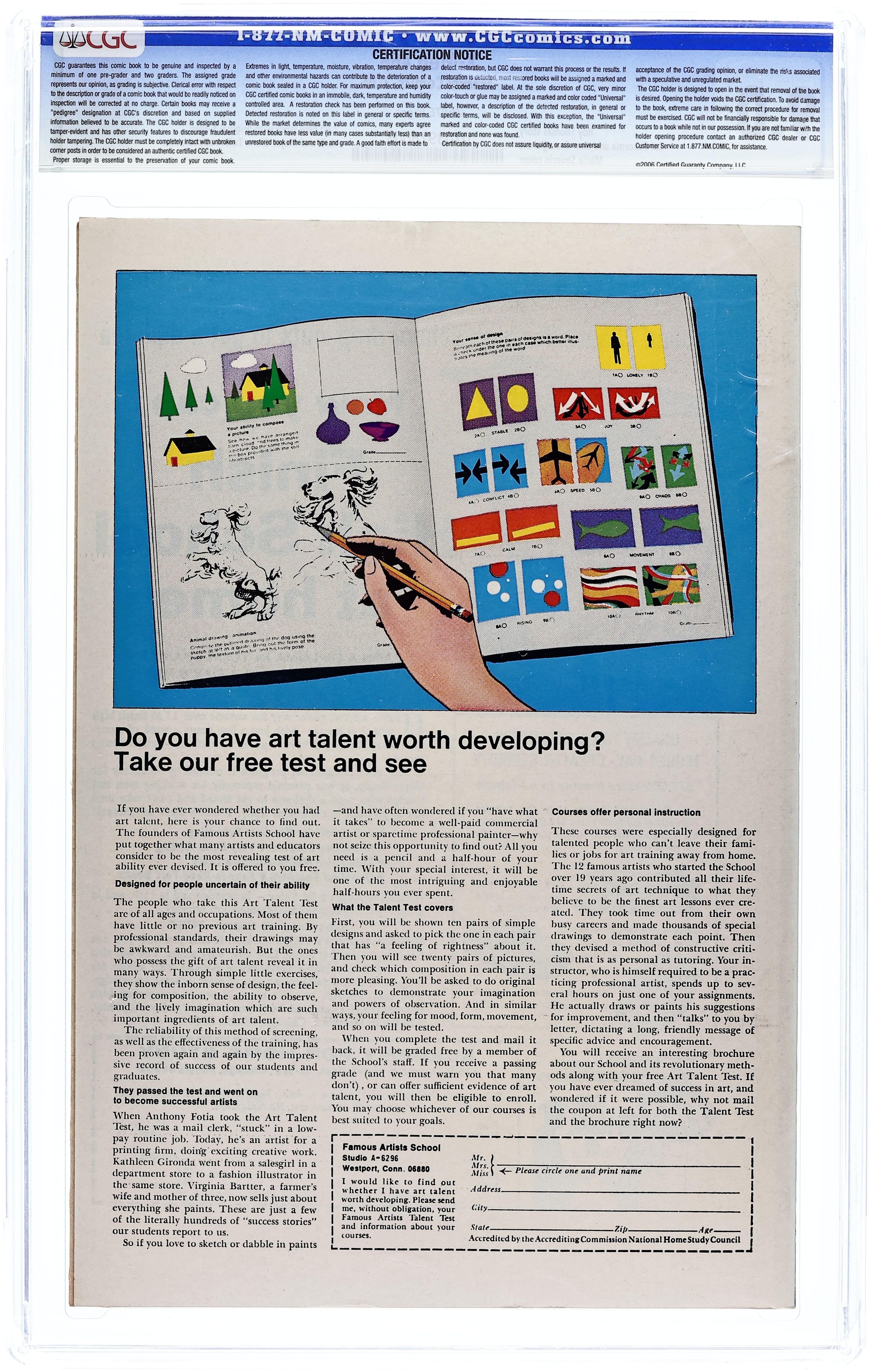 Cover art by Dan Adkins. Along Came a Spider, script by Roy Thomas, pencils by Werner Roth, inks by Dan Adkins; Banshee calls to the X-Men for help against a mysterious spider creature, and when the young mutants run across Spider-Man, they mistake him for their foe and a battle ensues; reprinted from issue 35. 36 pgs. $0.20. Cover price $0.20.
