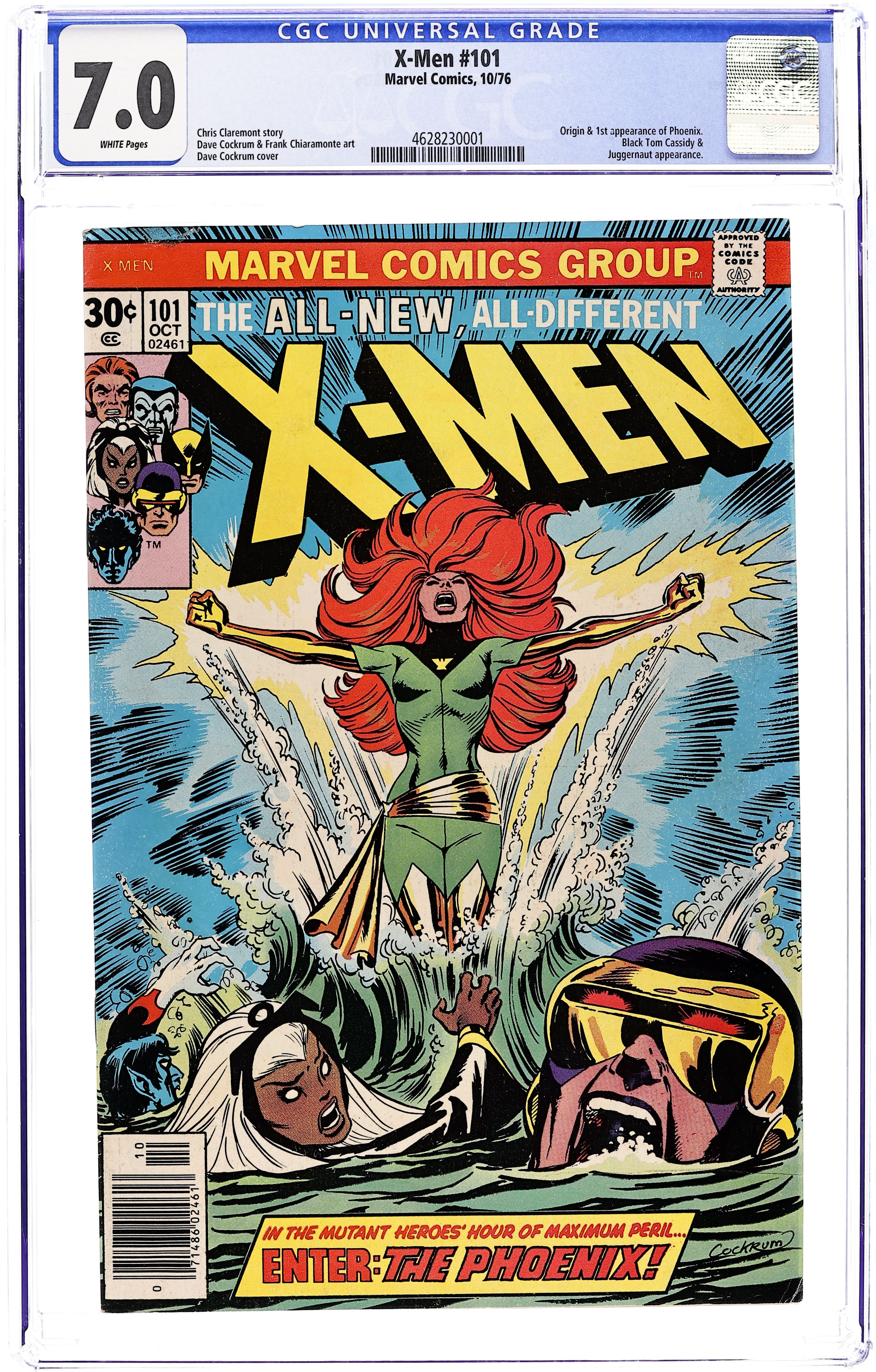 Ends Mar 2 9:50 PM CST Bid History 4 bids Current Bid $160 Your Secret Max Bid If you'd like to bid, please log in or register. "Like a Phoenix, from the Ashes!" Part 1 of 3. Story by Chris Claremont. Art by Dave Cockrum and Frank Chiaramonte. In the startling aftermath of last issue's events, the X-Men crash-land back on Earth, but they soon learn that a unbelievable change has come over Jean Grey. Don't miss the rise of the Phoenix! Meanwhile, the team decides to take in some much needed R&R. They head to Ireland to Banshee's ancestral home. However, nothing but danger and death wait for them here. 36 pages, full color. NOTE: 1st appearance of Phoenix, 1st appearance of Black Tom Cassidy, and Juggernaut cameo. Cover price $0.30.