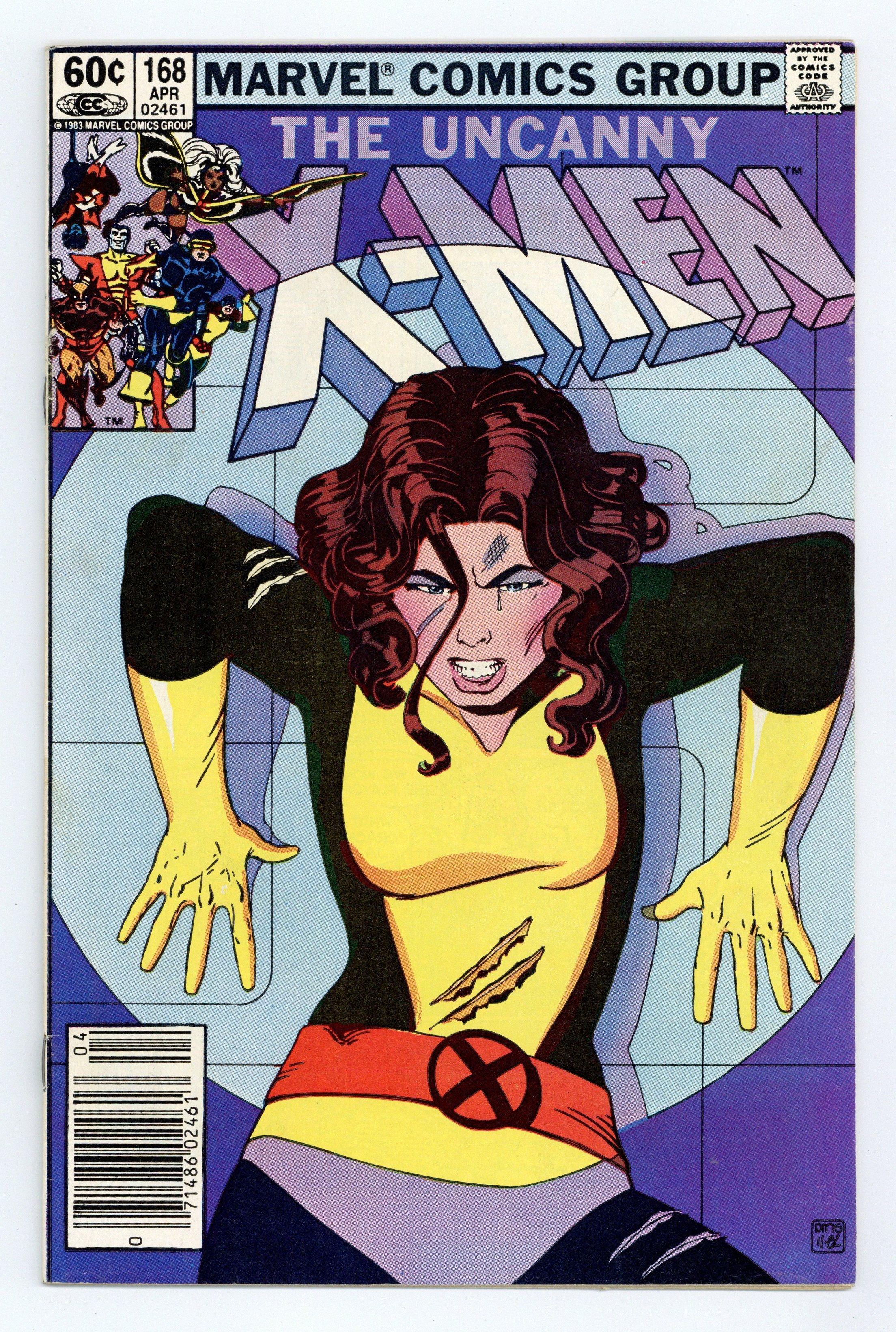 Starts Apr 20 Newsstand Edition. "Professor Xavier is a Jerk!" Story by Chris Claremont. Art by Paul Smith and Bob Wiacek. Professor X has ordered Kitty to leave the ranks of the X-Men, a position she feels she's earned, and join the ranks of the neophyte heroes in training the New Mutants. Needless to say, Kitty is not happy about her mentor's decision. Wolverine begins a leave of absence from the team. Meanwhile, Xavier attempts to adjust to his new body... a body that enables him to walk! Plus, the deadly Sidrian Hunters return (last seen in Uncanny X-Men #154). And in Alaska, Scott runs into a very familiar face. Wolverine's story continues in Wolverine (1982 Limited Series) #1. NOTE: 1st appearance of Madelyne Pryor. 36 pgs. Cover price $0.60.