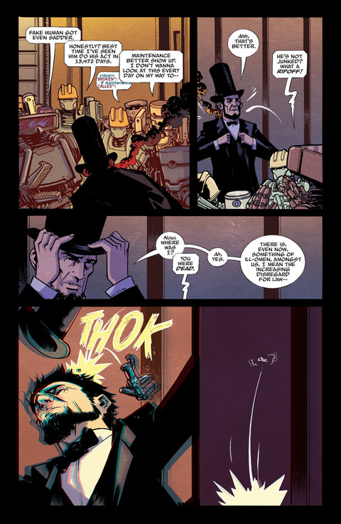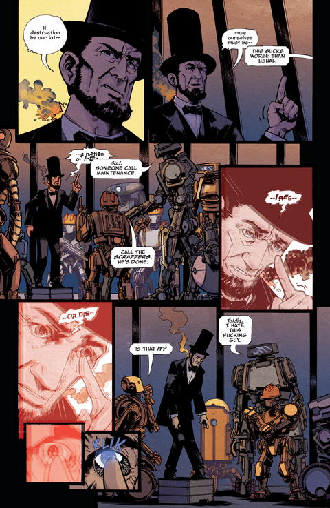 SERIES PREMIERE EXTRA-LENGTH DEBUT ISSUE! Humanity is extinct and all that remains are the robots who once helped us.The robots are happier now, doing their work without human interference. But not Abe. He believes there must be something more out there. After nearly getting killed, he's determined to wander the Earth until he finds it—or gets recycled trying. Artist ANDY MACDONALD (Doctor Strange, Wonder Woman), and writers MARK ELIJAH ROSENBERG (Approaching the Unknown, Year Million) and MATTHEW ROSENBERG (WE'RE TAKING EVERYONE DOWN WITH US, 4 Kids Walk Into A Bank) bring you an ongoing sci-fi adventure about finding purpose, holding onto hope, and really lonely robots.