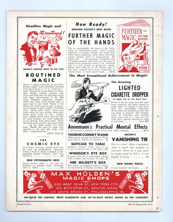 Vol. 2, No. 3 - May , 1946. Magazine for magicians. 8.5" x 11.75", 52 pages, B&W. Cover price $0.50.