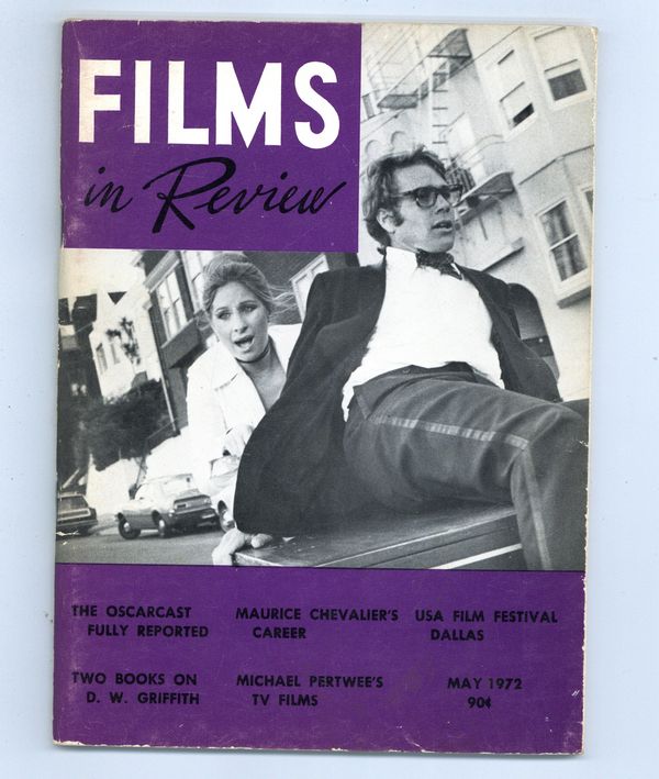 Published May 1972 by National Board of Review of Motion Pictures Inc..$2.65Film in Review is a publication of the National Board of Review of Motion Pictures, Inc, an independent, non-profit organization of public citizens founded in 1909 to represent the interests of the motion picture public. This National Board further assists the development of the motion picture as a source of entertainment, as education, and as art, by providing media for the expression of the public's opinion about films and their cultural and social effects. 5 1/2-in. x 7 1/2-in., 64 pages, B&W. Cover price $0.90.