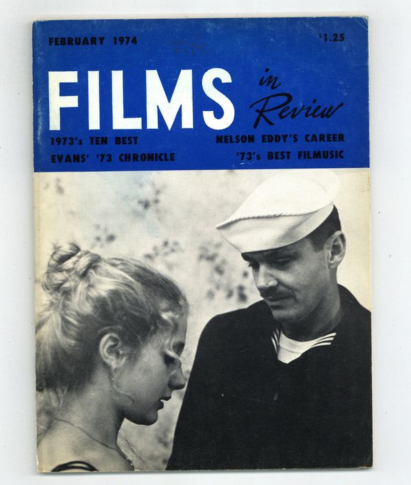 Published Feb 1974 by National Board of Review of Motion Pictures Inc..$12.00Film in Review is a publication of the National Board of Review of Motion Pictures, Inc, an independent, non-profit organization of public citizens founded in 1909 to represent the interests of the motion picture public. This National Board further assists the development of the motion picture as a source of entertainment, as education, and as art, by providing media for the expression of the public's opinion about films and their cultural and social effects. 5 1/2-in. x 7 1/2-in., 64 pages, B&W. Cover price $1.25.
