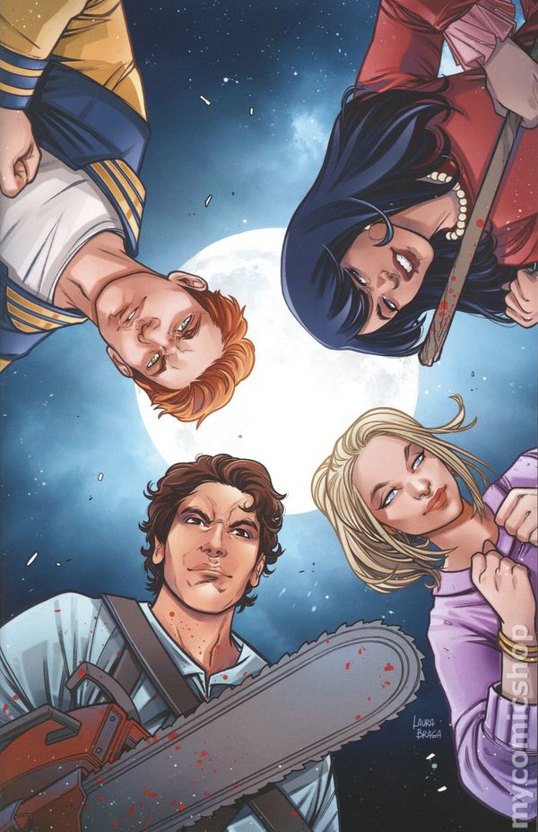 Limited 1 for 15 Retailer Incentive Variant Cover. (W) Erik Burnham (A) Bill Galvan (CA) Laura Braga DO YOU WANT THE BAD NEWS, OR THE WORSE NEWS? The bad news is that Archie Andrews has accidentally summoned the Army of Darkness to the peaceful streets of Riverdale — and thats pretty bad news! But the good news is that when Archie read the cursed passage in question from the pages of the Necronomicon Ex Mortis, he didnt properly complete the incantation — which means theres still a chance to banish the Deadites back to the infernal realms. Unfortunately, it also means that if the Deadites can get hold of Archie and force him to read the incantation properly, theyll be unstoppable. But in order to do that, theyll first have to get past a certain one-handed hero — and hes feeling lucky! 32 pages, full color, rated T+. Cover price $4.99.