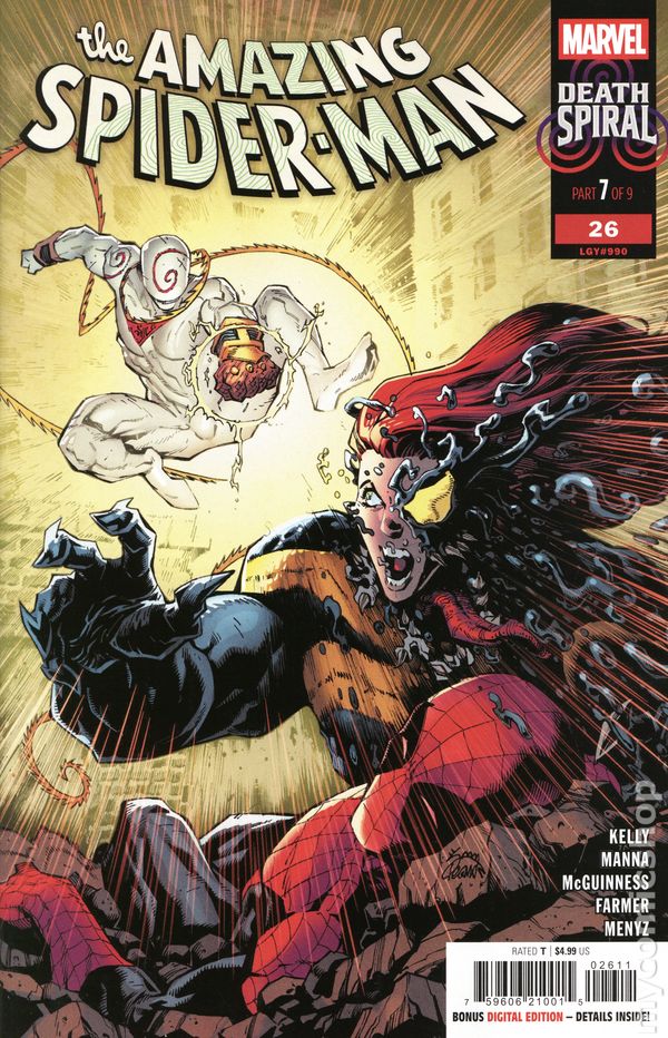 Limited 1 for 25 Retailer Incentive Variant Cover. (W) Joe Kelly (A) Ed McGuinness (CA) J. Gonzo DEATH SPIRAL PART SEVEN! SPIDER-MAN is the LAST hero standing against TORMENT'S onslaught! MJ, Eddie and Dylan are in Torment's sights. Peter can't save them all! And Torment's newest ALLY just tipped the scales in the serial killer's favor! 32 pages, full color, rated T. Cover price $4.99.