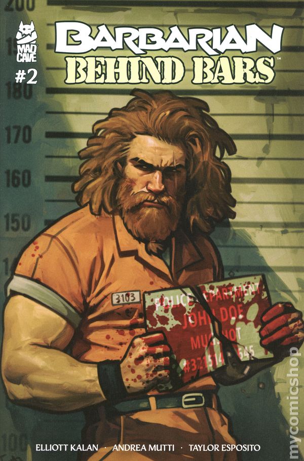 (W) Elliott Kalan (A) Andrea Mutti (CA) Francesco Thomaselli The Barbarian is making a break from behind bars — but between freedom and our hero from another world stands a squad of taser-wielding prison guards! Luckily, a solitary confinement cell is a great place to receive a mystic visitation from a goddess of cosmic justice. Meanwhile, the Barbarians public defender, Irene Chang gets much too close for comfort with her clients possessed, blood-thirsty battleaxe! BARBARIAN BEHIND BARS is the high-fantasy grindhouse story youve been dreaming of! 32 pages, full color, T+. Cover price $4.99.