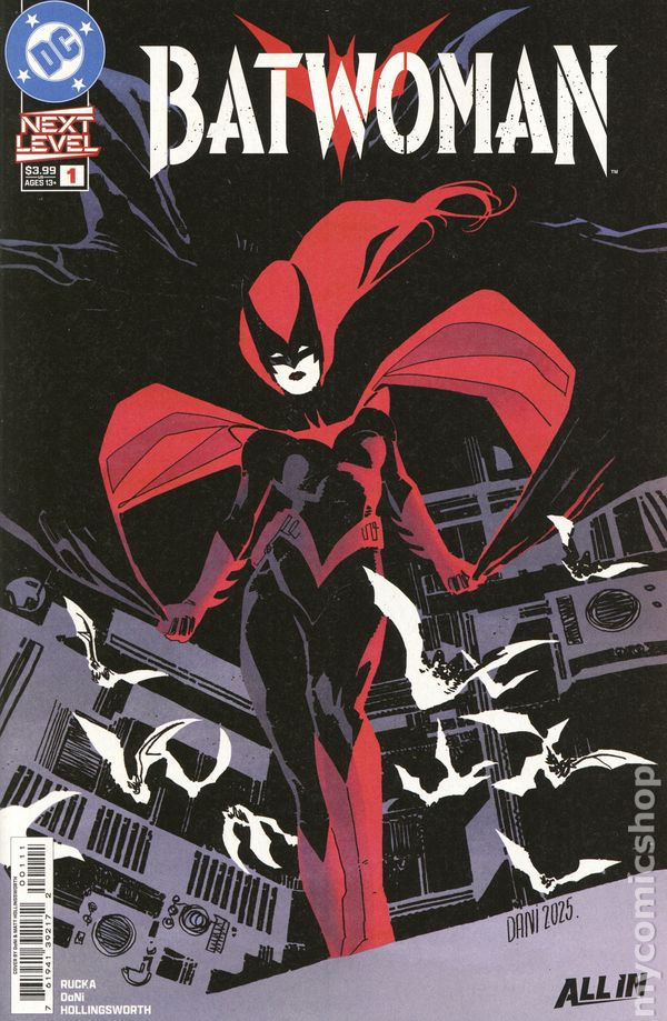 (W) Greg Rucka (A) DaNi (CA) DaNi EISNER AWARD-WINNER GREG RUCKA AND VISIONARY ARTIST DANI BRING ON THE NEXT LEVEL FOR BATWOMAN! Batwoman. Daughter. Sister. Soldier. Hero. But since she was 10 years old, Kate Kane has lived in the shadow of a prophecy and the machinations of a religion devoted to the end of all things. How do you fight the devil when the devil is real? And how do you win? Acclaimed writer and co-creator of the modern Batwoman Greg Rucka returns to the story of Kate Kane alongside visionary artist DaNi for a DC Next Level series that will redefine Batwoman and her mission for a new generation. 32 pages, full color, rated 13+. Cover price $3.99.