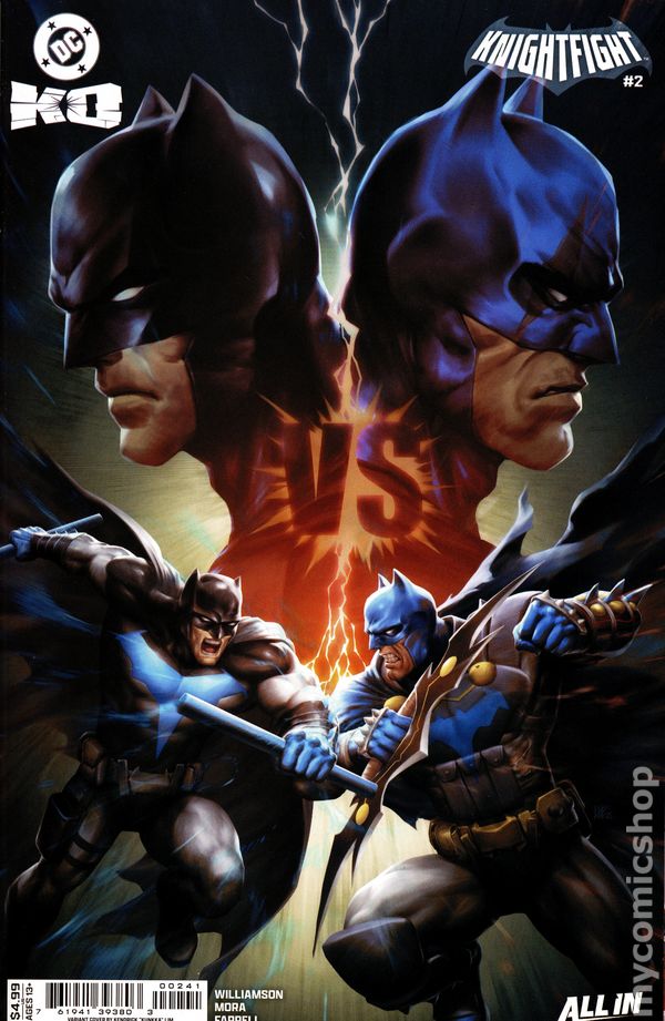(W) Joshua Williamson (A) Dan Mora (CA) Dan Mora BATMAN VS. BATMAN FOR THE SOUL OF GOTHAM CITY! The stage is set, and Bruce Waynes battle through a gauntlet of future Batmen is on! Each former Robin has shaped Gotham City into their own vision of justice, and if Bruce can make his way past Dick Grayson, hell face the darkest one yet. Will he survive the most violent aspects of his own legacy? Or will Batmans greatest failure destroy him and the city hes sworn to protect? Its a literal battle for the cowl--and for the fate of the DC Universe--as the all-star creative team of Joshua Williamson and Dan Mora turns up the heat! 32 pages, full color, rated 13+. Cover price $3.99.