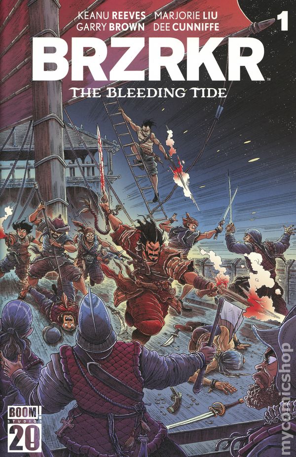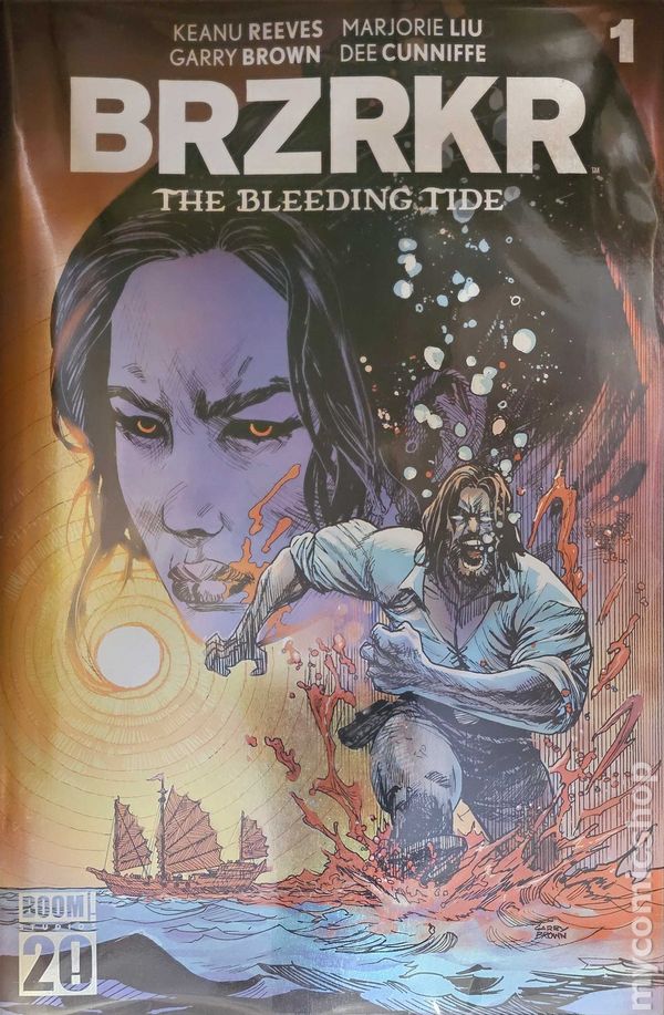 (W) Keanu Reeves; Marjorie Liu (A) Garry Brown (CA) Rebeca Puebla Can B. quell the bleeding tide? When the Captain follows a strange heartbeat into the depths of the ocean, she finds a box chained in irons—and the deformed mass of legendary warrior B. inside. Now awakened, B. must jump into battle to defend the crew from an ambush at sea despite rising concerns. What is the Captain after with such a dangerous bounty on her head, and more importantly, what is she hiding? 50 pages, full color, not rated. Cover price $11.99.