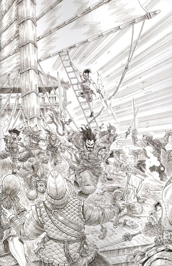 Limited 1 for 25 Retailer Incentive Variant Cover. (W) Keanu Reeves; Marjorie Liu (A) Garry Brown (CA) TBA Can B. quell the bleeding tide? When the Captain follows a strange heartbeat into the depths of the ocean, she finds a box chained in irons—and the deformed mass of legendary warrior B. inside. Now awakened, B. must jump into battle to defend the crew from an ambush at sea despite rising concerns. What is the Captain after with such a dangerous bounty on her head, and more importantly, what is she hiding? Cover price $9.99.