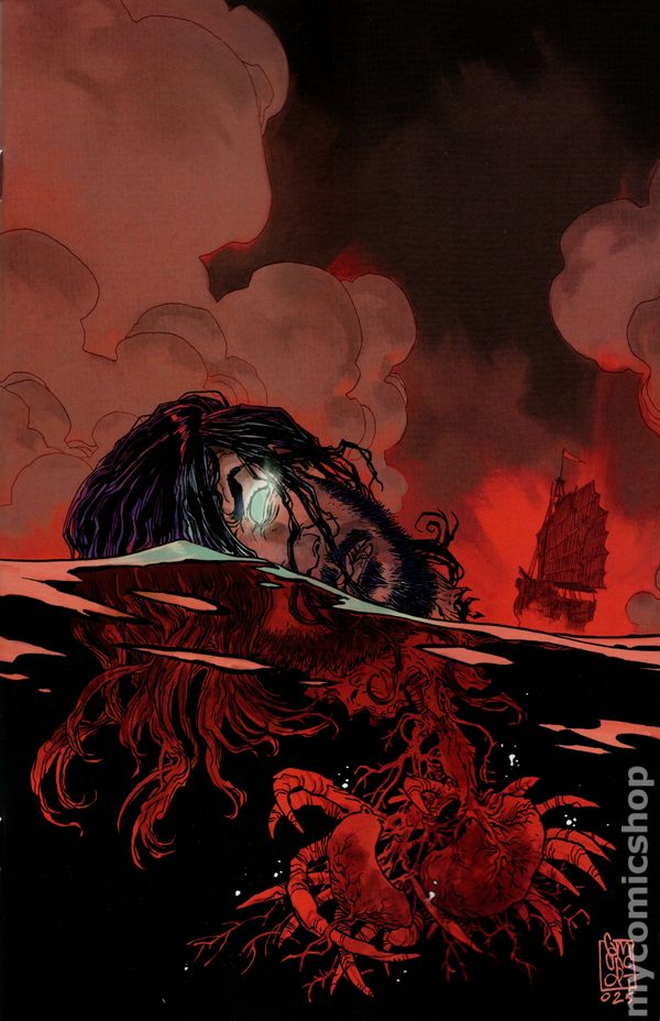 (W) Keanu Reeves; Marjorie Liu (A) Garry Brown (CA) Rebeca Puebla Can B. quell the bleeding tide? When the Captain follows a strange heartbeat into the depths of the ocean, she finds a box chained in irons—and the deformed mass of legendary warrior B. inside. Now awakened, B. must jump into battle to defend the crew from an ambush at sea despite rising concerns. What is the Captain after with such a dangerous bounty on her head, and more importantly, what is she hiding? 56 pages, full color, rated mature. Cover price $9.99.