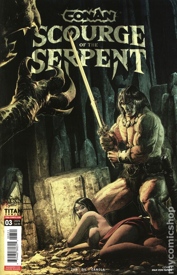 $4 Conan Scourge Of The Serpent #3 Cvr B Max Von Fafner Variant (Titan, 2025) NM Clicking on the links to the eBay listings shown above and then making a purchase may result in MyComicShop earning a commission from the eBay Partner Network.