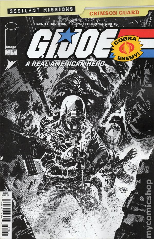 Limited 1 for 10 Retailer Incentive Variant Cover. (W) Gabriel Hardman (A) Gabriel Hardman, Matt Hollingsworth (CA) Gabriel Hardman SUPERSTAR CREATORS PRESENT UNFORGETTABLE ALL-NEW COBRA SILENT MISSIONS The face of comic books changed forever when G.I. JOE: A REAL AMERICAN HERO #21 introduced fans to the Silent Interlude, an action-packed story with NO DIALOGUE. Now, Cobra finally gets their turn in the ssspotlight! Acclaimed creator GABRIEL HARDMAN (Green Lantern: Earth One) invites you to join the next graduating class of Crimson Guard as they complete their final test: protecting COBRA COMMANDER from an all-out assault by G.I. JOE! Failure is NOT an option! 28 pages, T, full color Cover price $3.99.