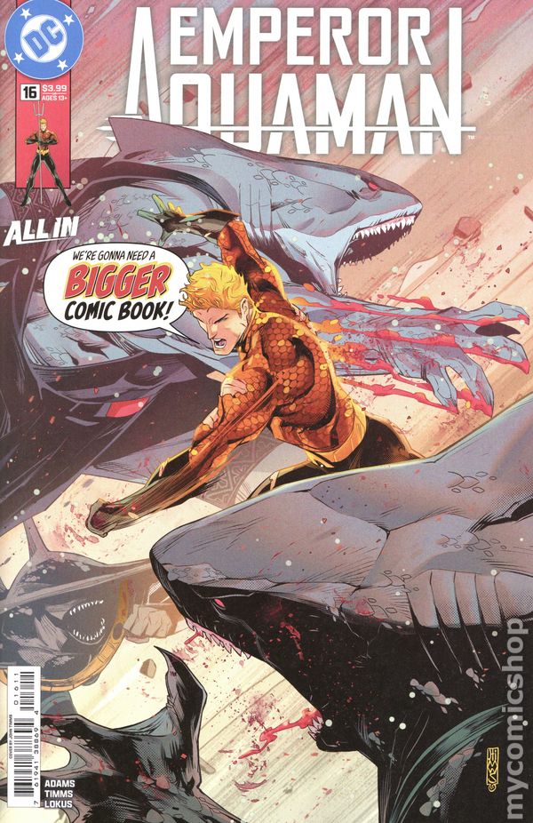 $4 Emperor Aquaman #16 Cvr A Timms (DC, 2026) NM $5 EMPEROR AQUAMAN #16NM 4/8/26 Jeremy Adams John Timms DC A-Z single $5 Emperor Aquaman #16A VF/NM; DC | All In Jaws Tribute - w/Bag+Board Clicking on the links to the eBay listings shown above and then making a purchase may result in MyComicShop earning a commission from the eBay Partner Network.