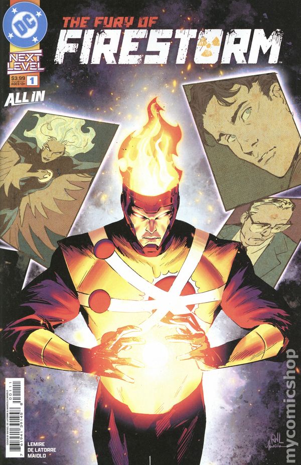 (W) Jeff Lemire (A) Rafael De Latorre (CA) Riley Rossmo THE NUCLEAR MAN GOES NEXT LEVEL WITH JEFF LEMIRE AND RAFAEL DE LATORRE! The community of Bedford, Colorado, is a sleepy small town. The people say hello to their neighbors, attend town hall meetings, and root for the local high school football team on Friday nights. But this idyllic small town is thrown upside down when the Nuclear Man arrives and starts...experimenting. Firestorm has turned buildings to sand and people to glass with no remorse and no warning. But what exactly provoked Ronnie Raymond to commit this heinous act, and can anyone contain the fury that is Firestorm? Brought to you by the incredible team of Jeff Lemire (Absolute Flash, JSA) and Rafael De Latorre (The Penguin) comes the next epic in the Next Level line. 32 pages, full color, rated T+. Cover price $4.99.