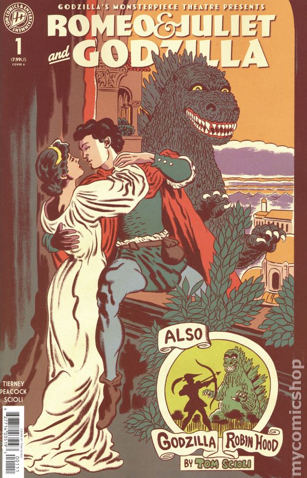 (W) Tom Scioli; Adam Tierney (A) Sean Peacock; Tom Scioli (CA) Tom Scioli The explosive literary mashup series returns! But this time, Godzilla is taking on the classics one story at a time. O Godzilla, Godzilla, wherefore art thou Godzilla? First, its invading the Bards most revered play, Romeo & Juliet. Families at war! Forbidden love blossoming! Godzilla on its path of destruction! Fair Verona wont be so fair for long!And thats not all: Tom Scioli is returning to the series to write and illustrate a backup story starring the legendary thief entitled Robin Hood and the Monster of Nottingham! 52 pages, full color, not rated Cover price $7.99.