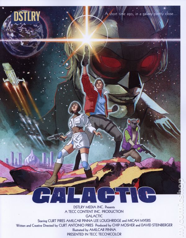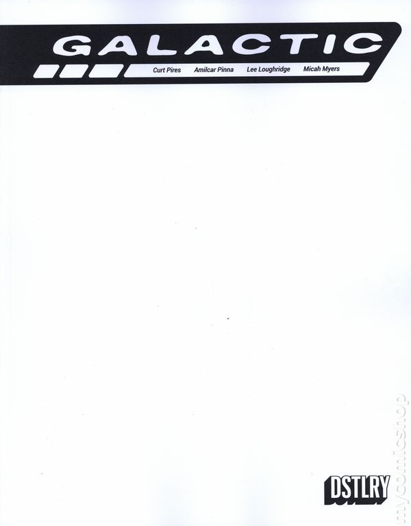 (W) Curt Pires (A) Amilcar Pinna (CA) Dalton Rose NEW DSTLRY SERIES DEBUT FROM CURT PIRES (Indigo Children, Youth) AND AMILCAR PINNA (X-Men)! What if George Lucas and Quentin Tarantino f@#&ed and had a baby? That baby would be Curt Pires and Amilcar Pinna's GALACTIC. An ultraviolent interstellar romance that tells the story of a roguish bounty hunter hired to bring back a Princess on a death-bender on a hippy planet, and inadvertently find themselves caught in the crossfire of an intergalactic war. And maybe, just maybe, falling in love along the way! Did we mention there's a talking dog who pilots the starship?! For fans of STAR WARS, SAGA and SEX CRIMINALS. 48 pages, Rated Mature, Full Color Cover price $8.99.
