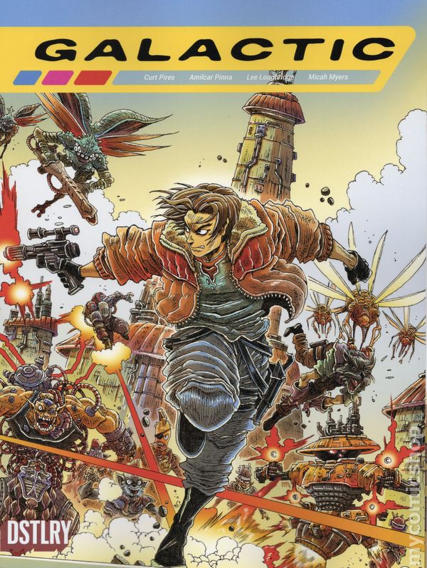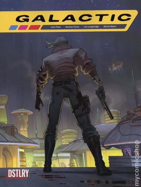 (W) Curt Pires (A/CA) Amilcar Pinna NEW DSTLRY SERIES DEBUT FROM CURT PIRES (Indigo Children, Youth) AND AMILCAR PINNA (X-Men)! What if George Lucas and Quentin Tarantino f@#&ed and had a baby? That baby would be Curt Pires and Amilcar Pinna's GALACTIC. An ultraviolent interstellar romance that tells the story of a roguish bounty hunter hired to bring back a Princess on a death-bender on a hippy planet, and inadvertently find themselves caught in the crossfire of an intergalactic war. And maybe, just maybe, falling in love along the way! Did we mention there's a talking dog who pilots the starship?! For fans of STAR WARS, SAGA and SEX CRIMINALS. 48 pages, Rated Mature, Full Color Cover price $8.99.