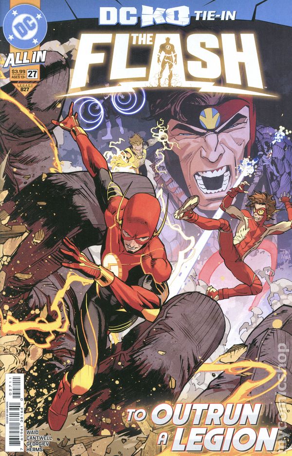 (W) Mark Waid, Christopher Cantwell (A) Vasco Georgiev (CA) Ben Harvey THE SPEEDSTER CHASE THROUGH TIME CONTINUES! After Impulses shocking decision, the Flash races through the time stream before Impulses irrational actions can potentially doom the DC Universe. But someone is just a step behind the speedsters, while the Flash and Impulse run right into a shocking reunion! 28 pages, rated 13+, full color Cover price $4.99.