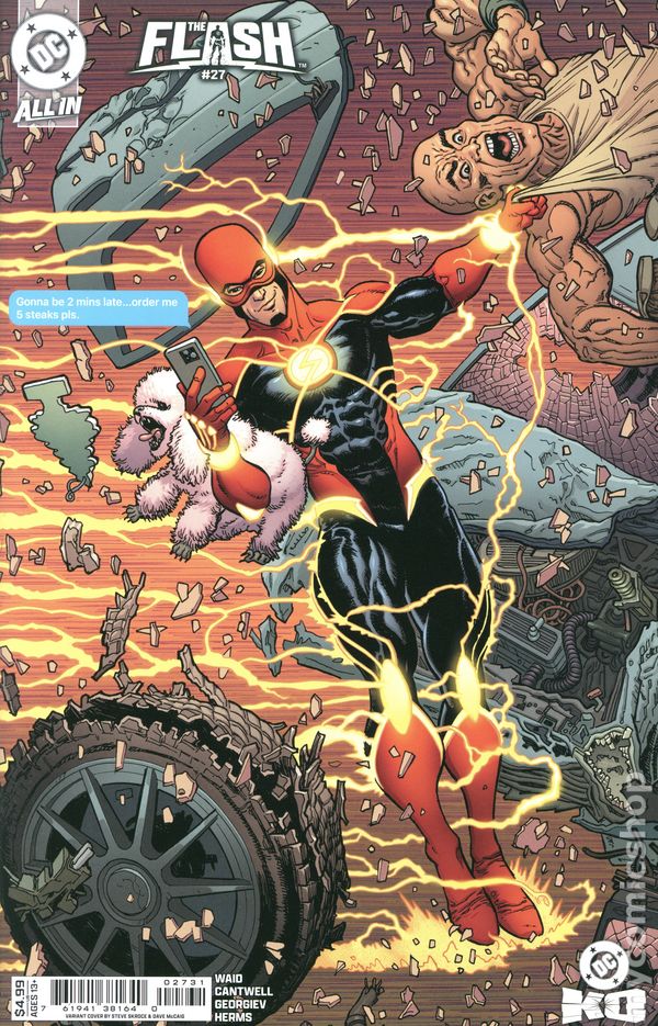 (W) Mark Waid, Christopher Cantwell (A) Vasco Georgiev (CA) Steve Skroce THE SPEEDSTER CHASE THROUGH TIME CONTINUES! After Impulses shocking decision, the Flash races through the time stream before Impulses irrational actions can potentially doom the DC Universe. But someone is just a step behind the speedsters, while the Flash and Impulse run right into a shocking reunion! 28 pages, rated 13+, full color Cover price $4.99.